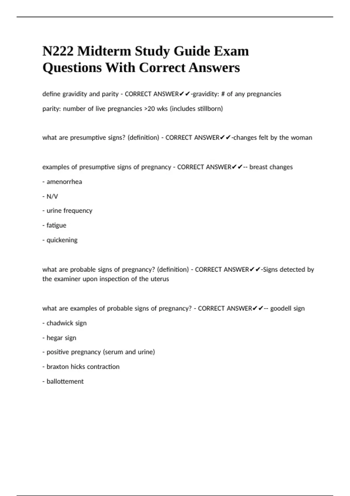 ,what |are |positive |signs |of |pregnancy? |(definition) |- |CORRECT |ANSWER✔✔-signs |only |