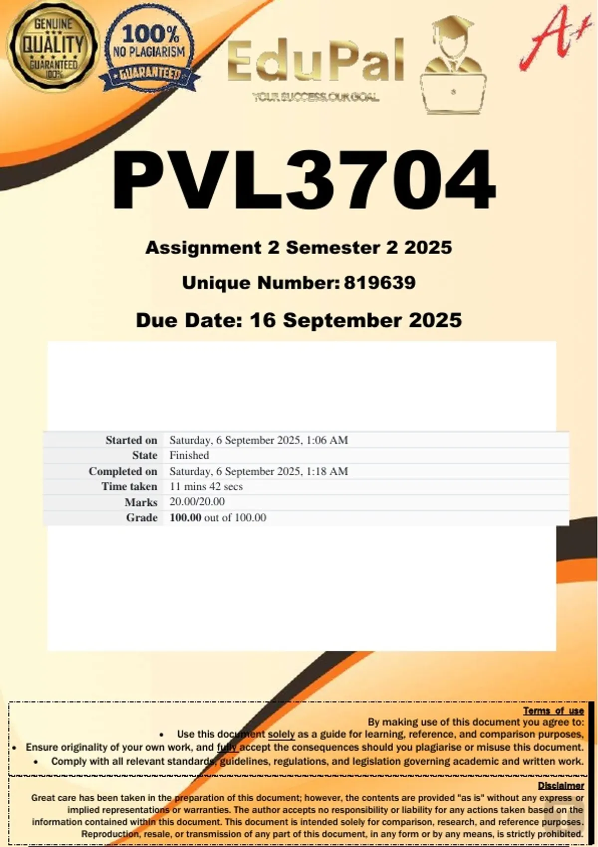 PVL3704 Assignment 2 (COMPLETE ANSWERS) Semester 2 2025 (819639) - DUE 16 September 2025