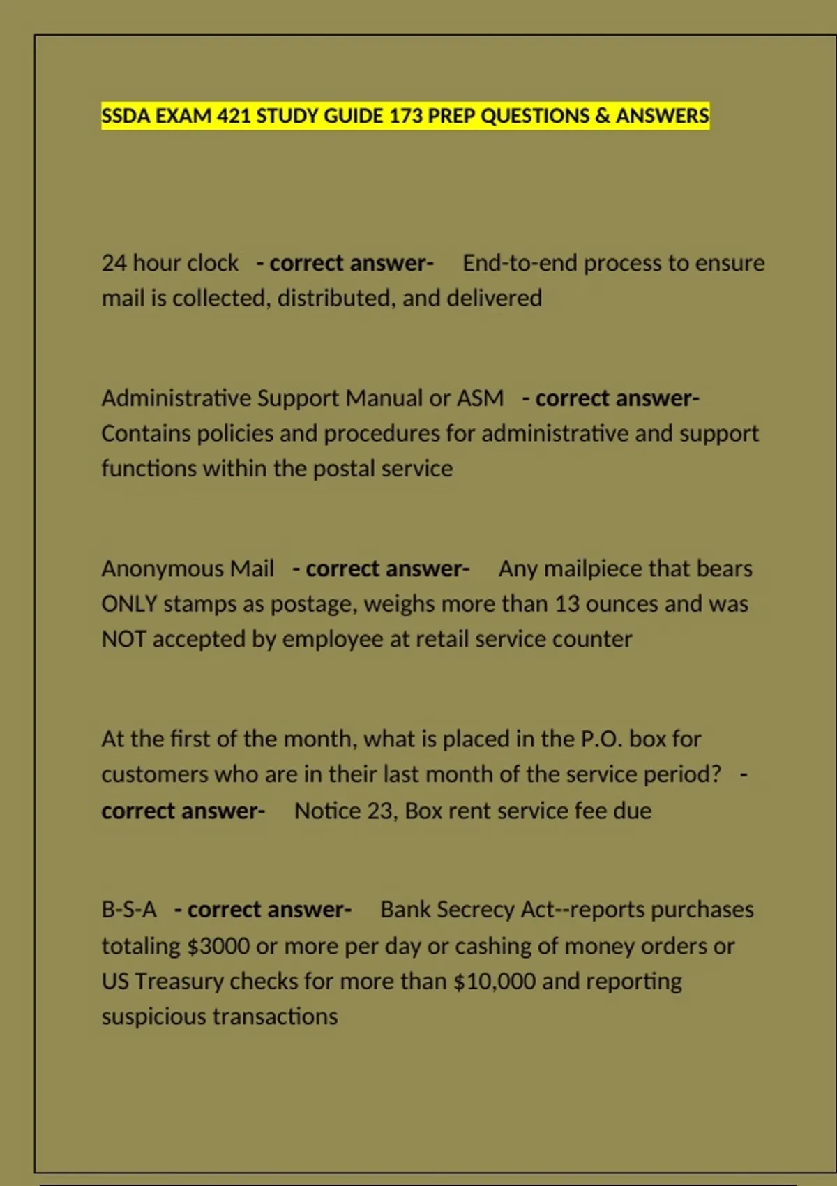 SSDA EXAM 421 STUDY GUIDE 173 PREP QUESTIONS & ANSWERS