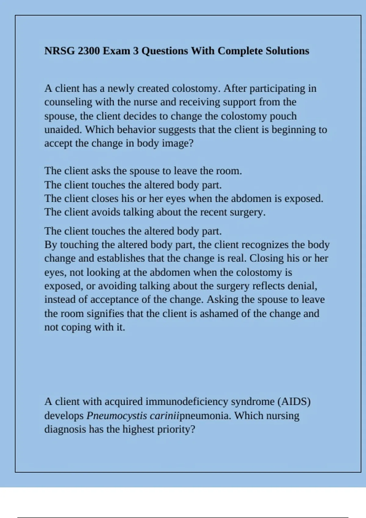 NRSG 2300 Exam 3 Questions With Complete Solutions