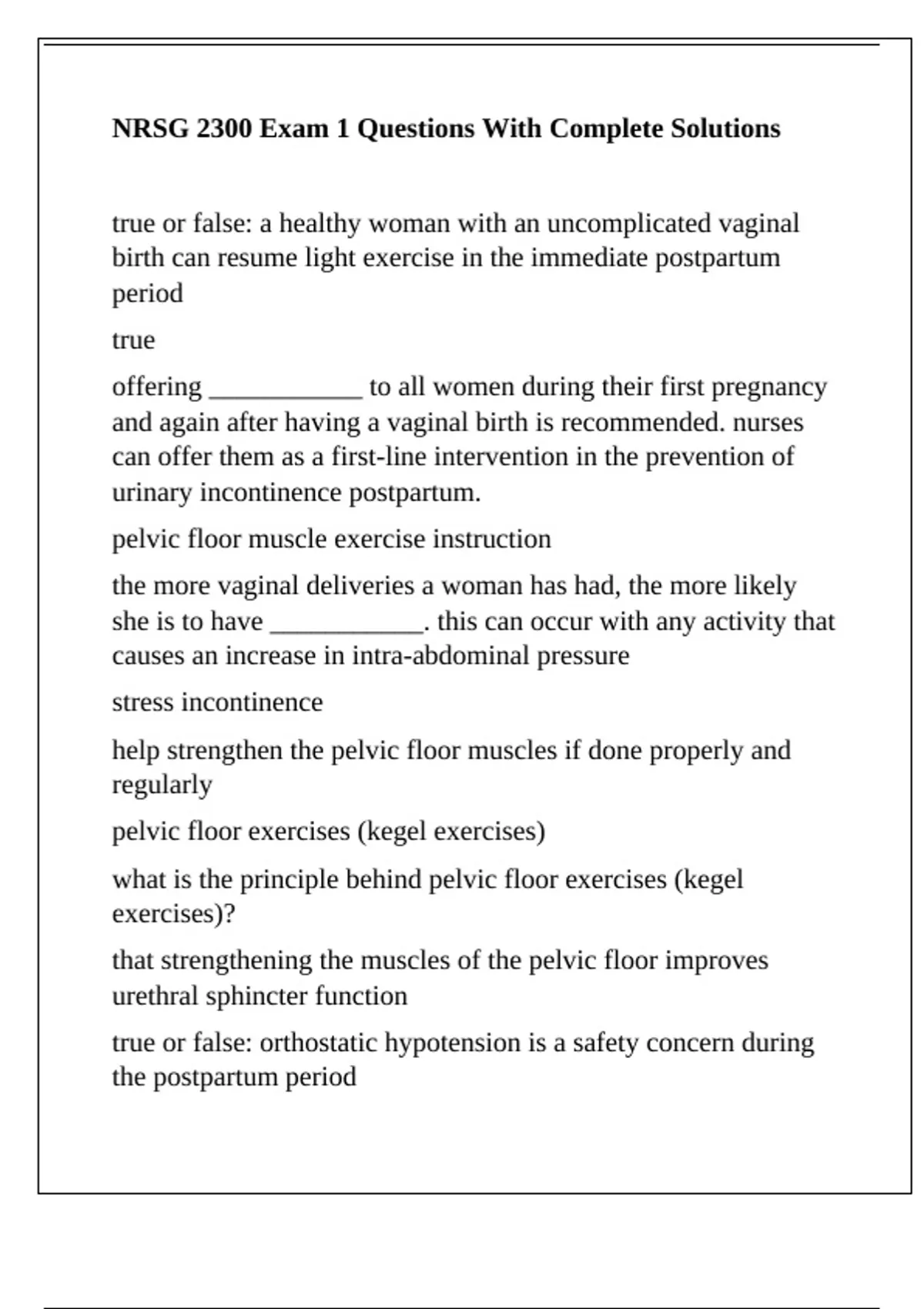 NRSG 2300 Exam 1 Questions With Complete Solutions