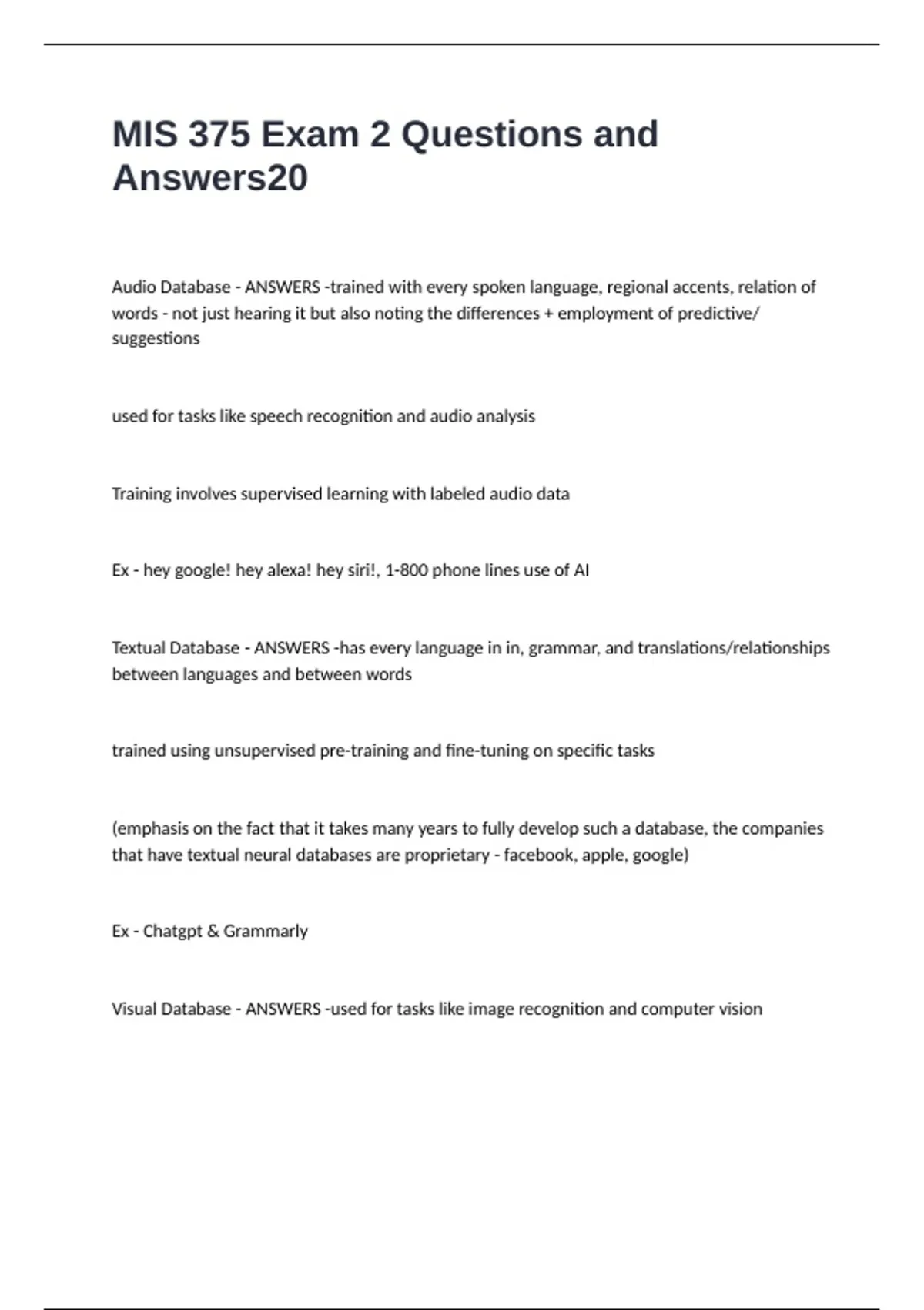 Visual Database - ANSWERS -used for tasks like image recognition and computer vision