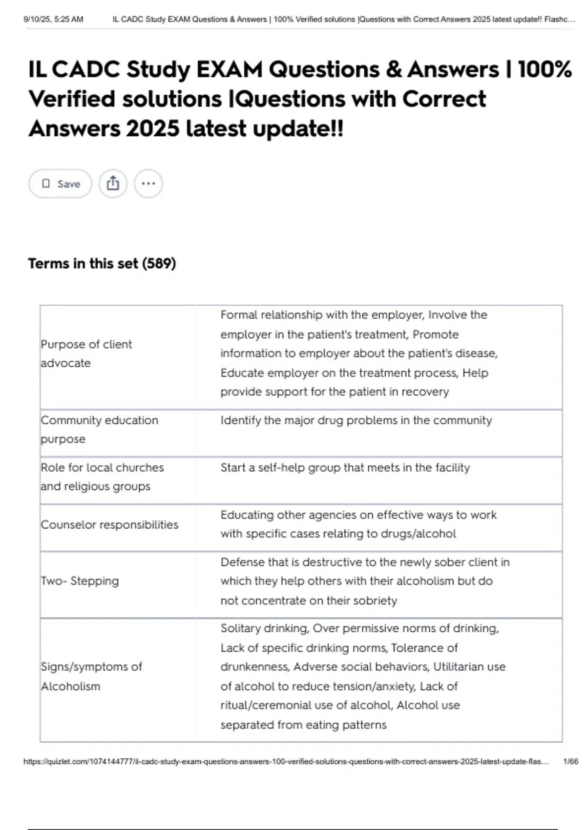 , 9/10/25, 5:25 AM IL CADC Study EXAM Questions & Answers | 100% Verified solutions |Questions with Correct Answers 2025 latest update!! Flashc…