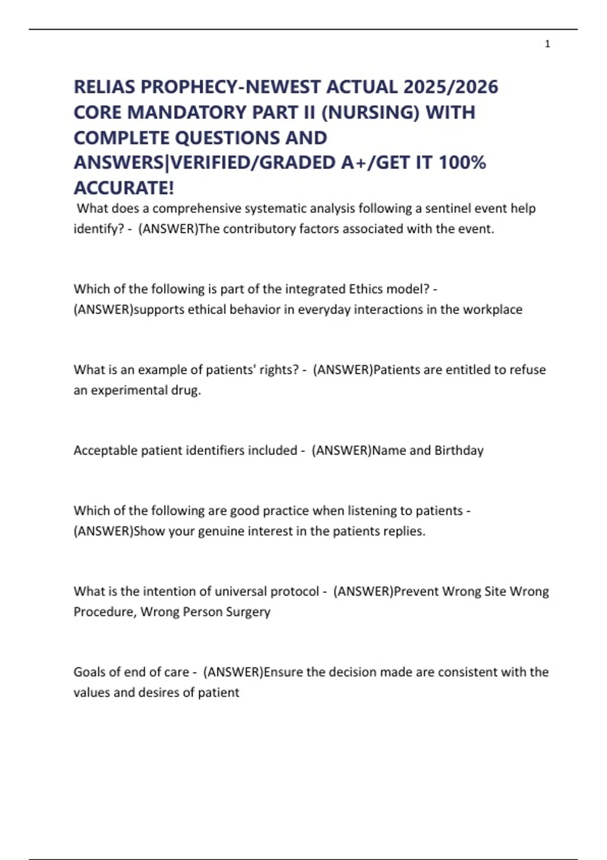 RELIAS PROPHECY-NEWEST ACTUAL 2025/2026