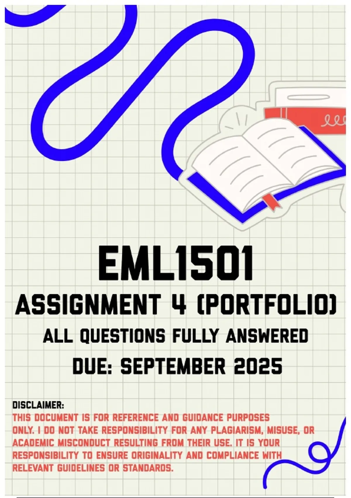 EML1501 Assignment 4 (Portfolio) Memo | Due September 2025. All questions fully answered. QUESTION 1 1.1. Develop an overview that explores the significant role of parents in fostering emergent literacy in young children. In your response demonstrate thorough understanding of the concepts addressed in the study guide. Your overview should address the following questions: Your overview must be well-structured, clear, and reflect your ability to think critically about the role of parents in the learning process of language acquisition. Use specific examples from the text and refer to key concepts where relevant. The length of the overview must be between 250 and 300 words. Address the following questions in your overview with clear headings. • What is the role of parents in the promotion of emergent literacy? • How can you identify a child who is emergent literate? • How does a child’s family background affect his level of literacy?