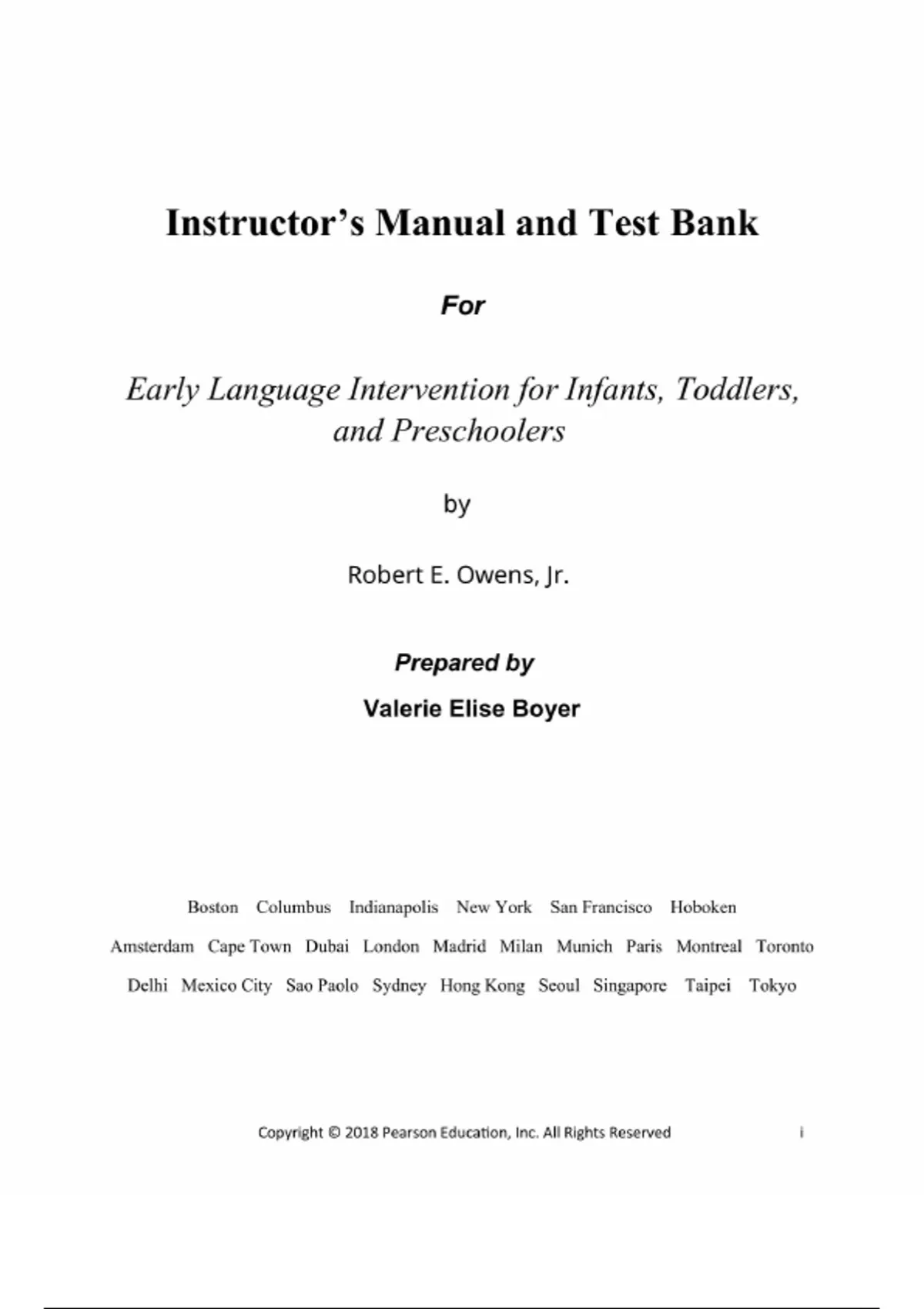 Instructors manual and test bank for Early Language Intervention for Infants, Toddlers, and Preschoolers 1st Edition Robert E. Owens,all chapters complete guide, grade A+
