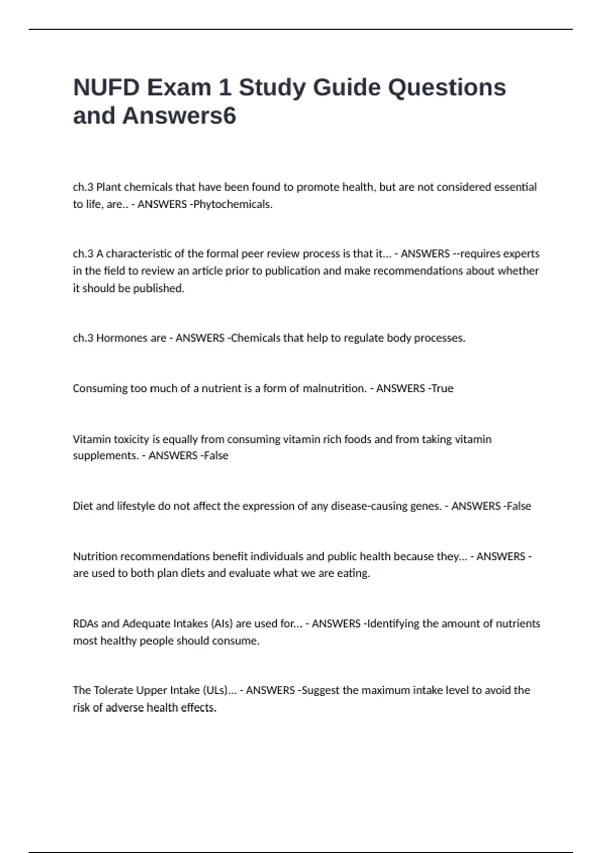 The Tolerate Upper Intake (ULs)... - ANSWERS -Suggest the maximum intake level to avoid the