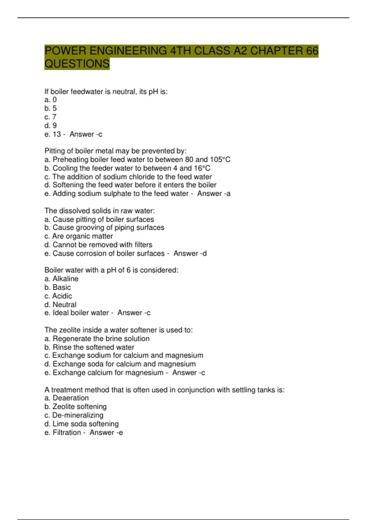 e. Ideal boiler water - Answer -c
