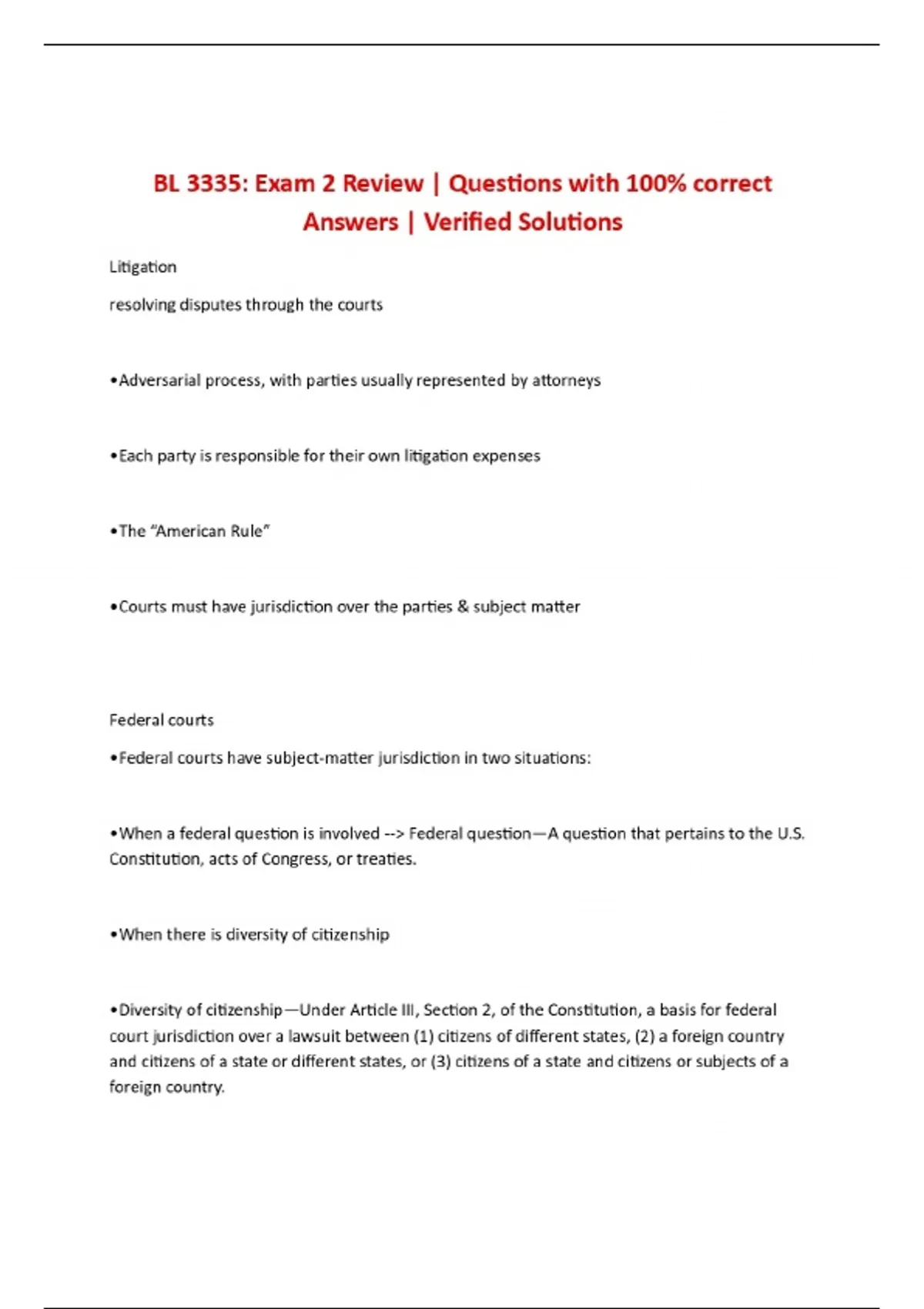 BL 3335: Exam 2 Review | Questions with 100% correct Answers | Verified Solutions