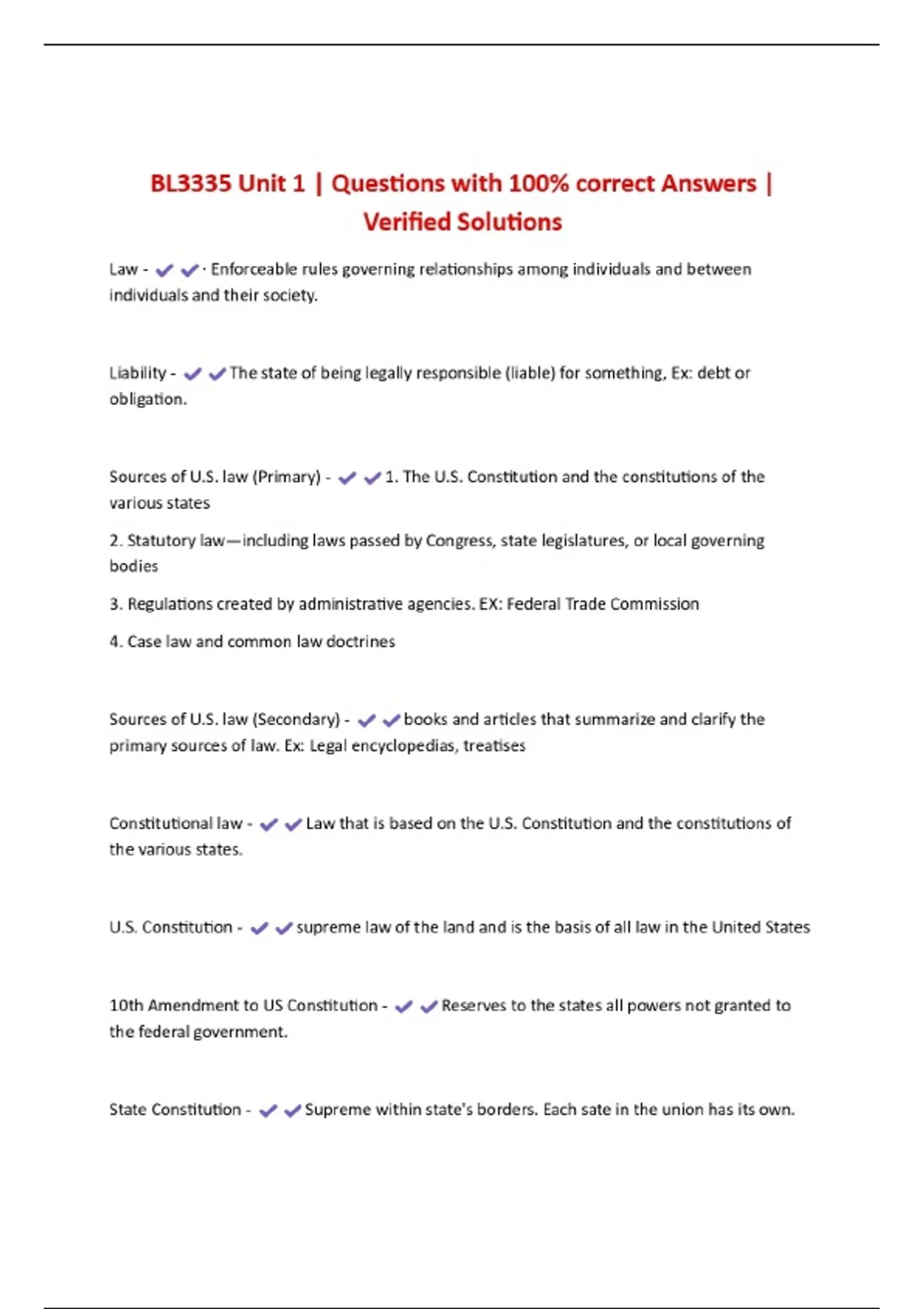BL3335 Unit 1 | Questions with 100% correct Answers | Verified Solutions