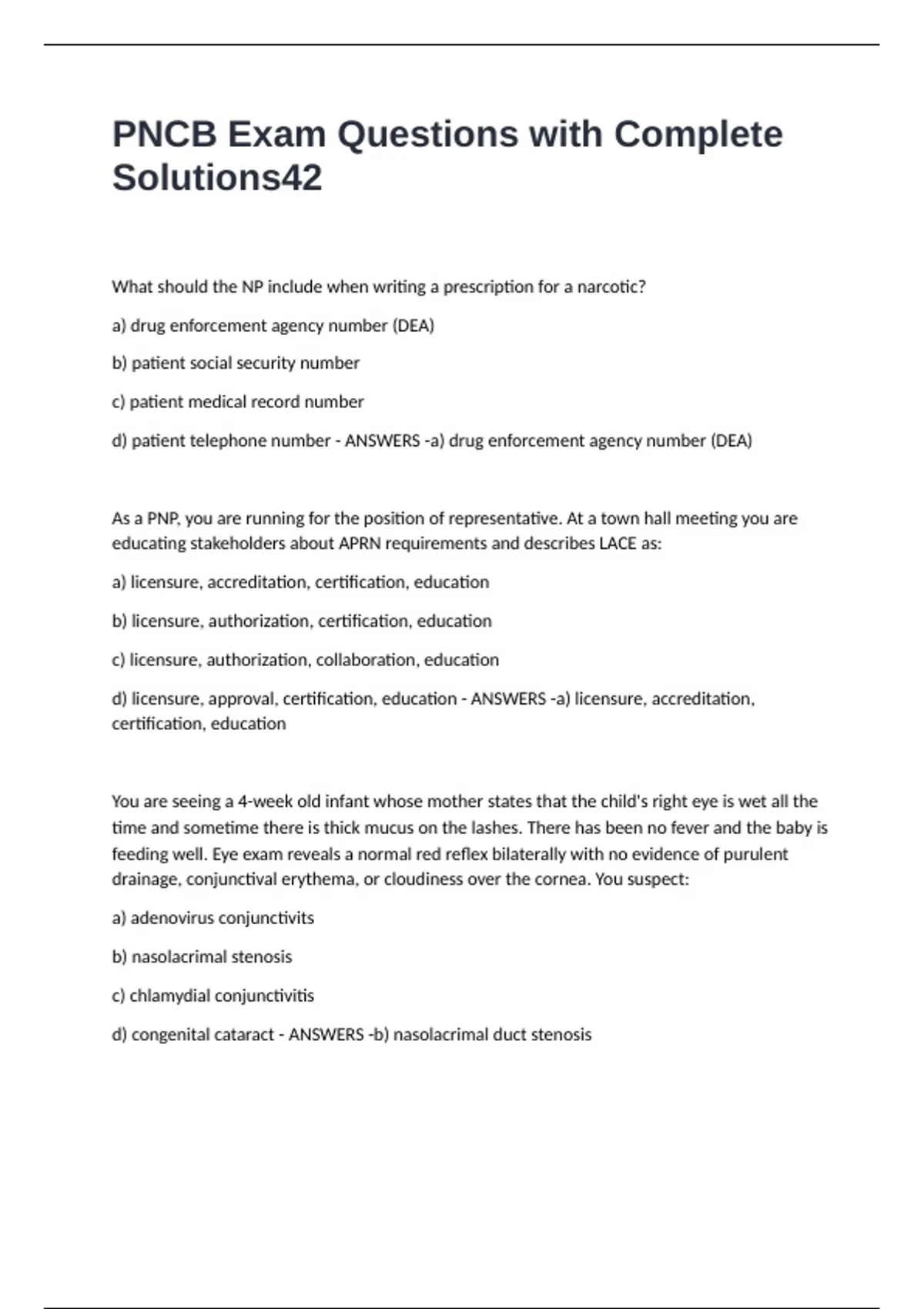 d) congenital cataract - ANSWERS -b) nasolacrimal duct stenosis