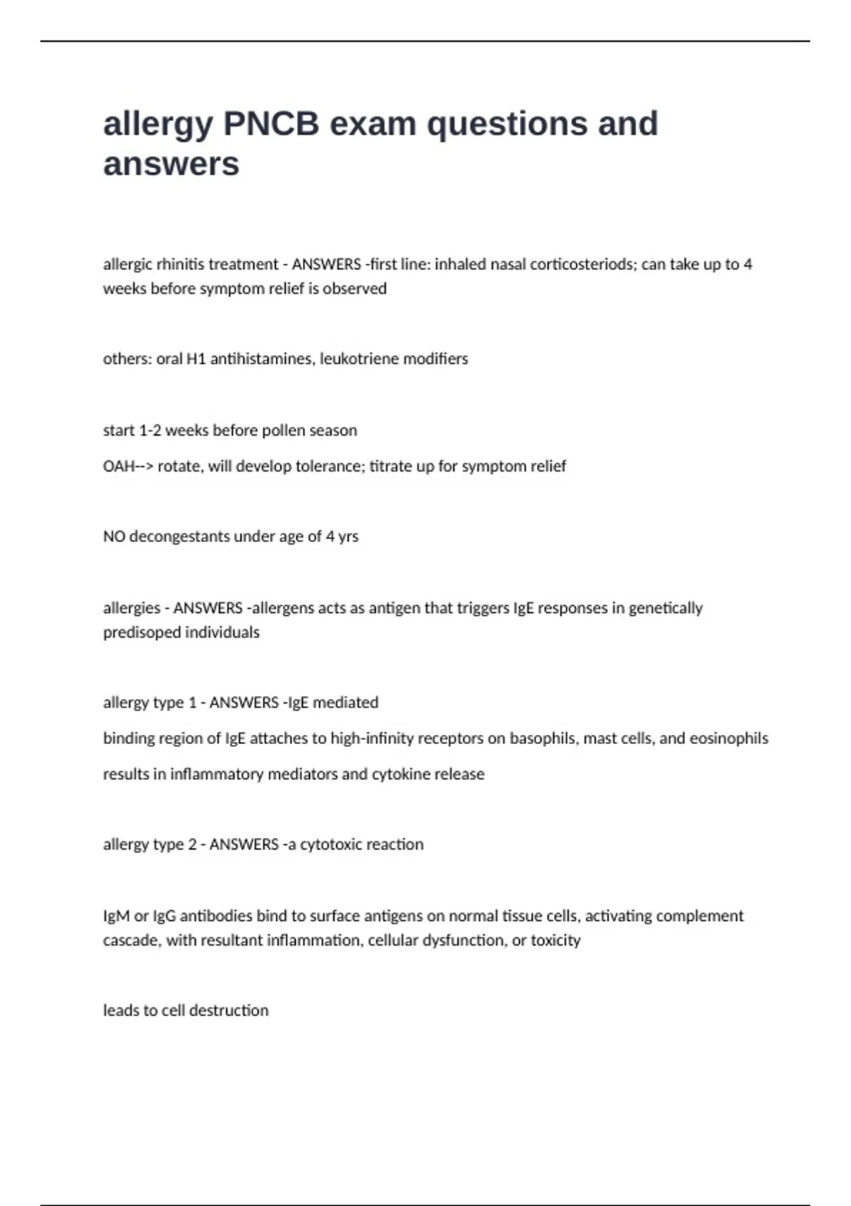 allergies - ANSWERS -allergens acts as antigen that triggers IgE responses in genetically