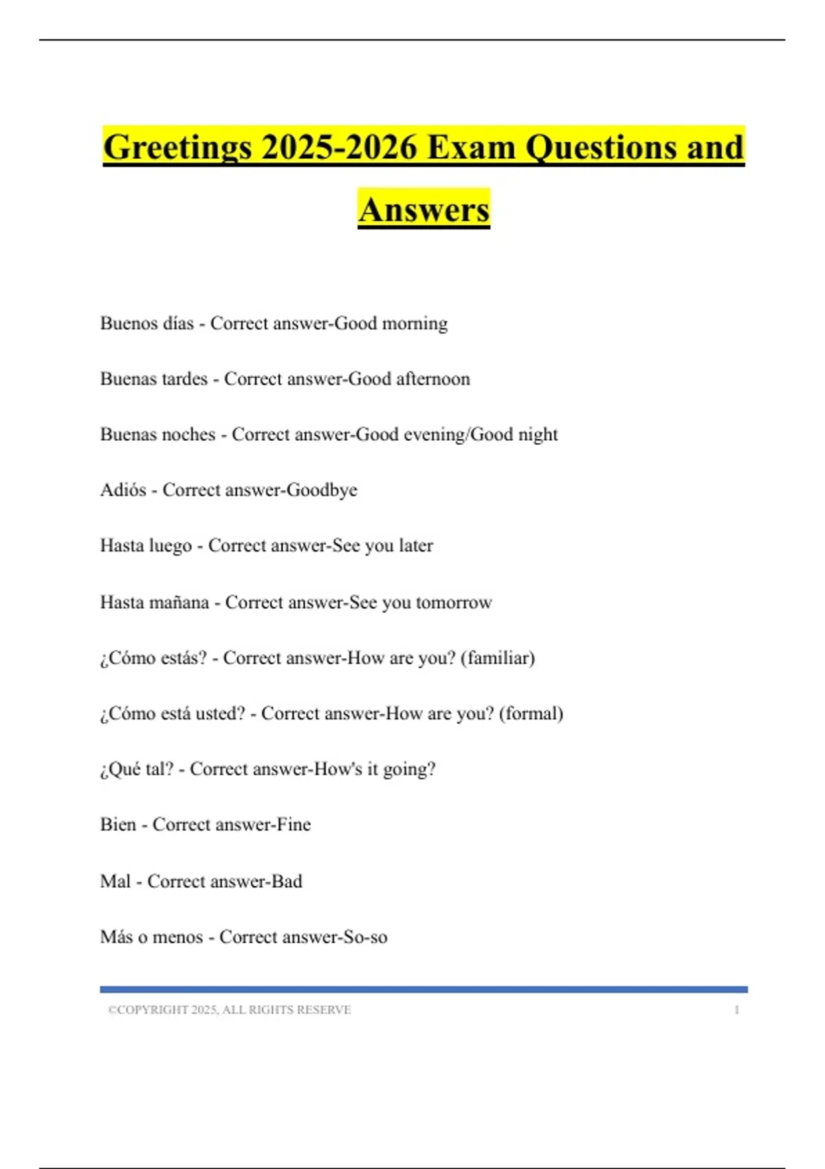 Greetings 2025-2026 Exam Questions and