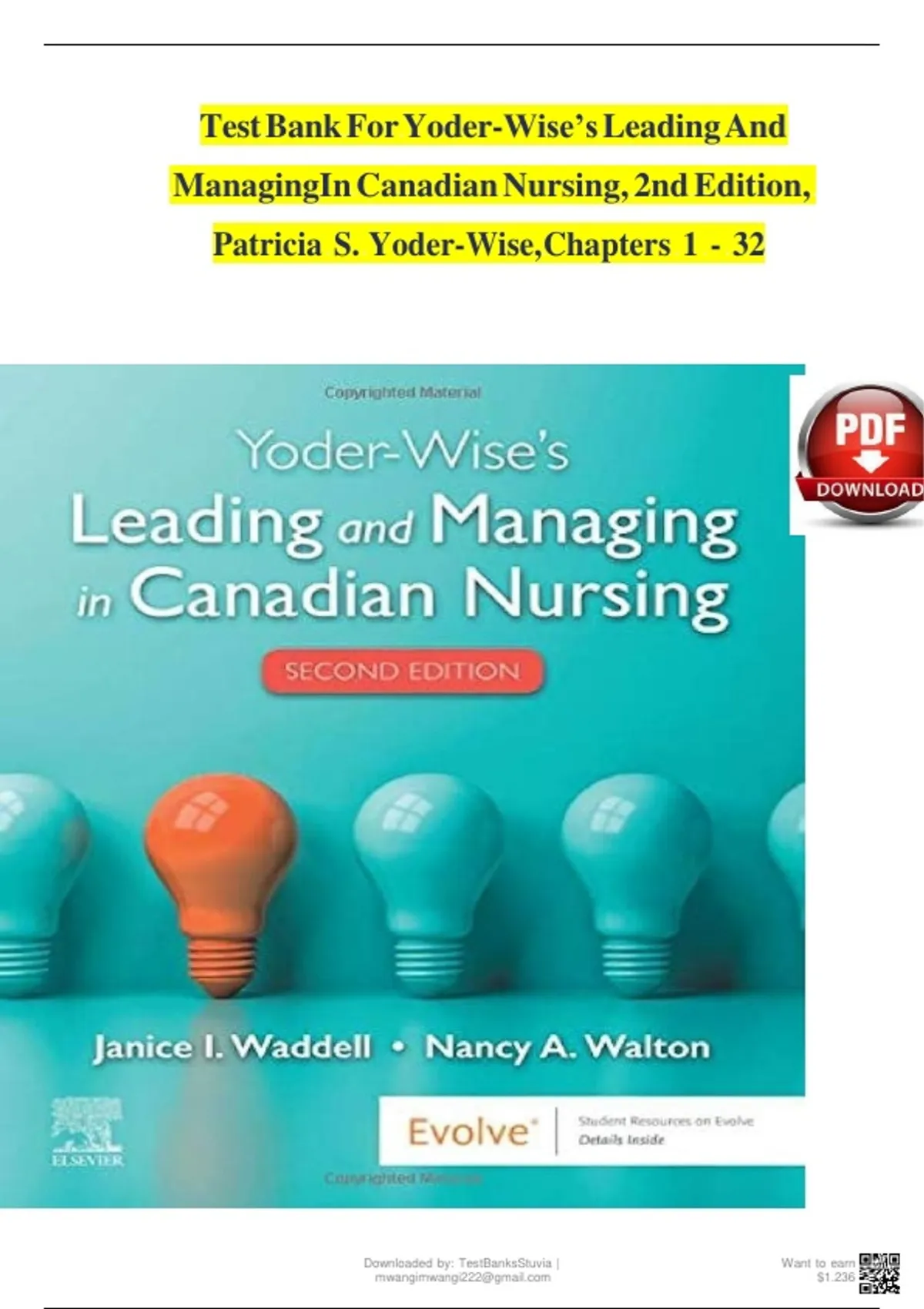 , TEST BANK FOR YODER-WISE’S LEADING AND MANAGING IN CANADIAN NURSING,