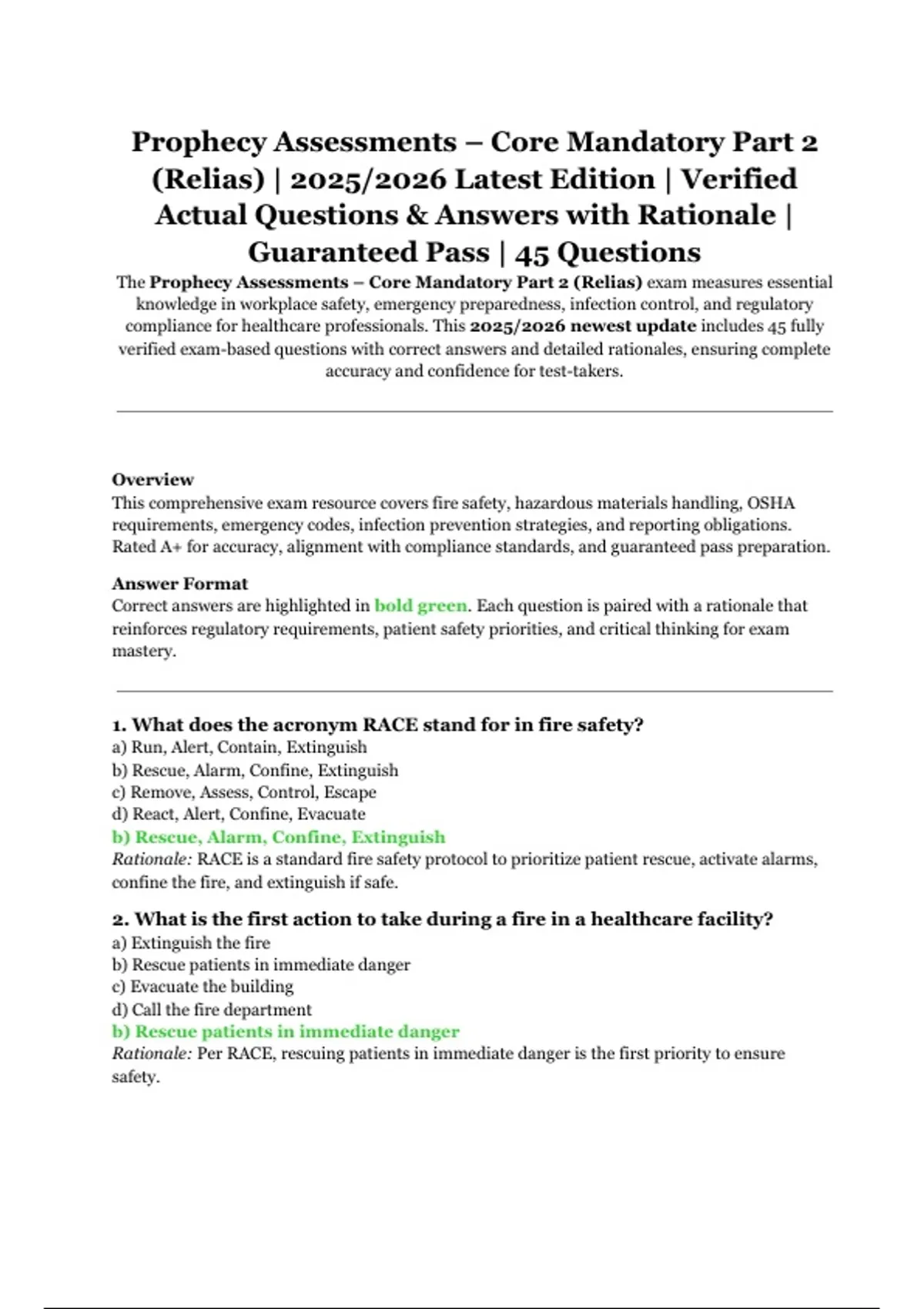 verified exam-based questions with correct answers and detailed rationales, ensuring complete
