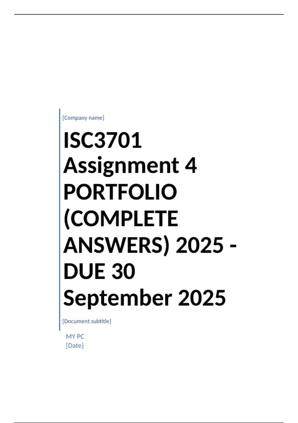ISC3701 Assignment 4 PORTFOLIO (COMPLETE ANSWERS) 2025 - DUE 30 September 2025;