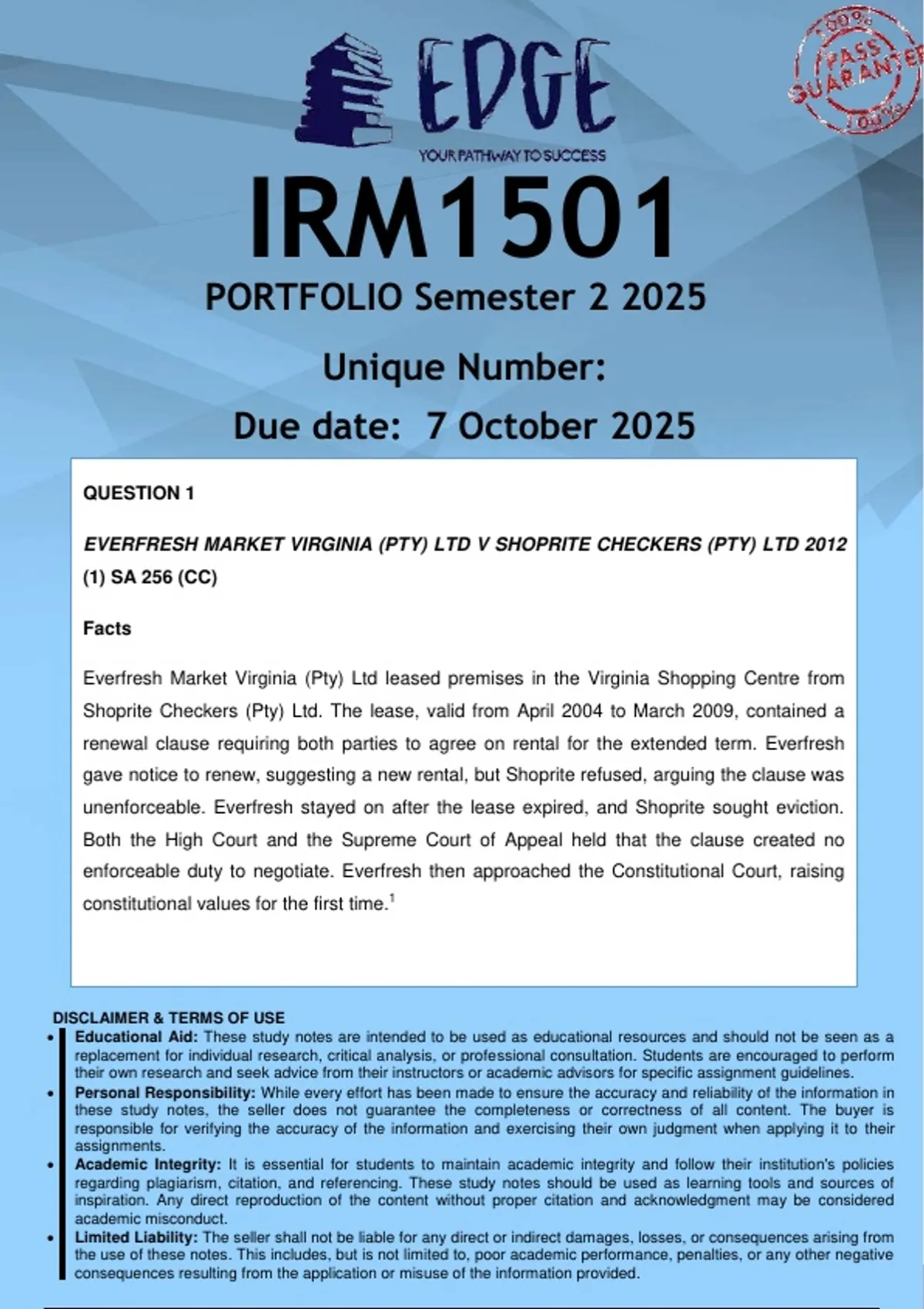 these study notes, the seller does not guarantee the completeness or correctness of all content. The buyer is