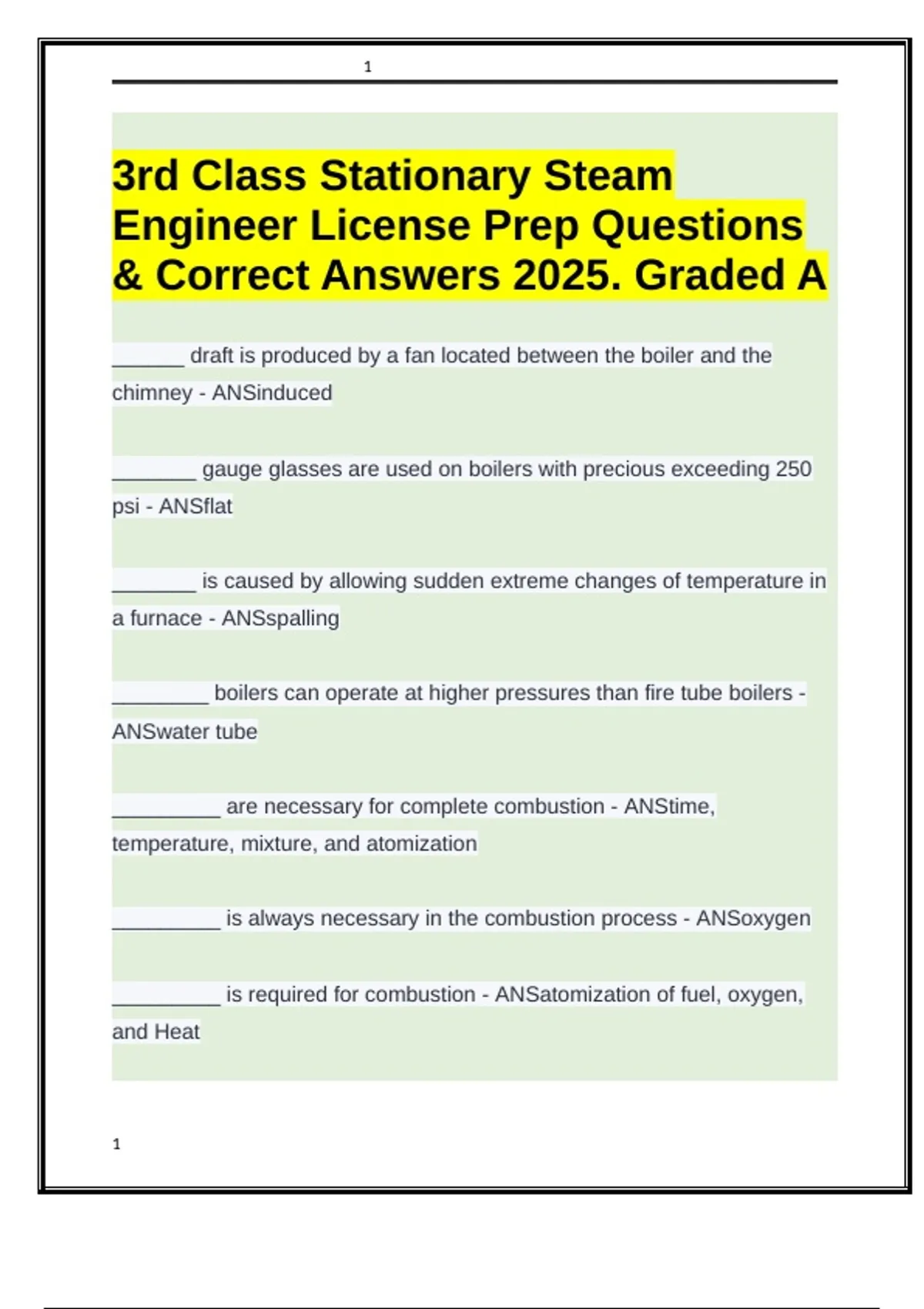 3rd class stationary steam engineer license prep questions and correct answers 2025. Graded A (1).docx