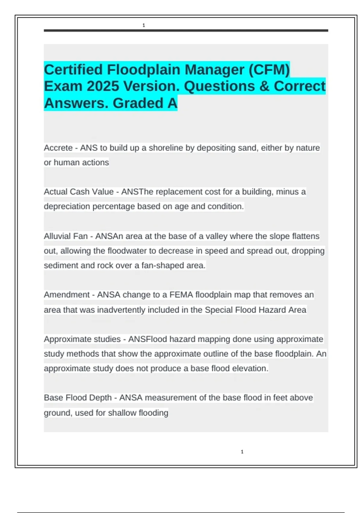 Certified Floodplain Manager (CFM) Exam 2025 Version. Questions & Correct Answers. Graded A.docx