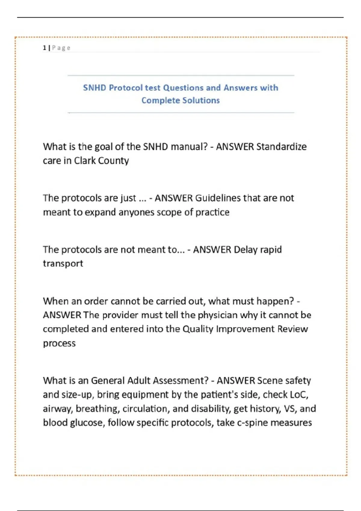 SNHD Protocol test Questions and Answers with Complete Solutions