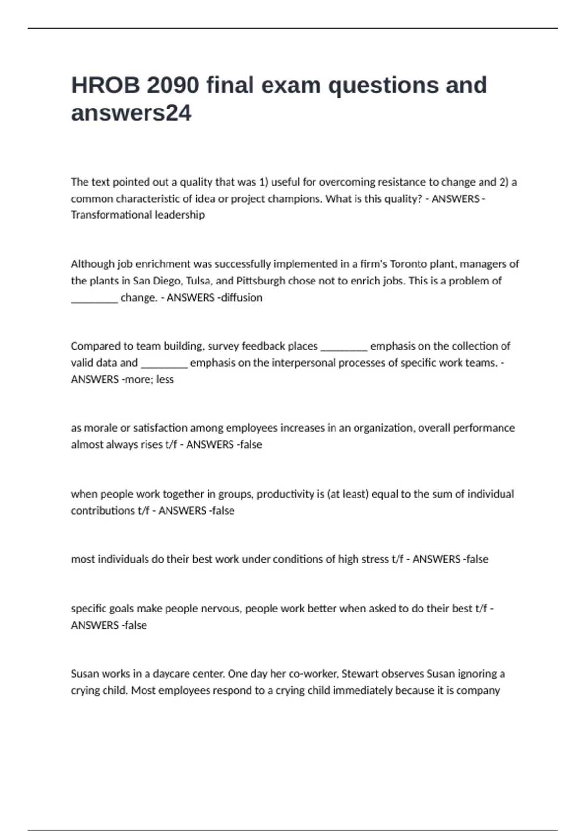 HROB 2090 final exam questions and answers