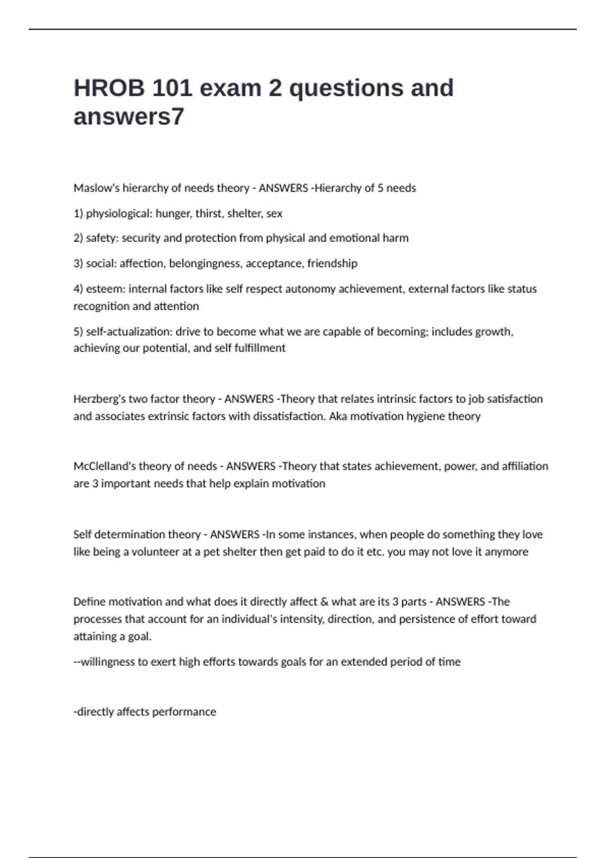 Maslow's hierarchy of needs theory - ANSWERS -Hierarchy of 5 needs