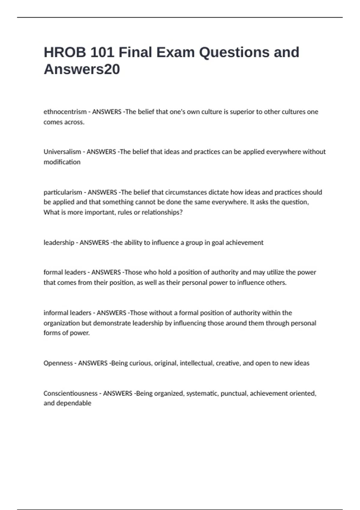 Conscientiousness - ANSWERS -Being organized, systematic, punctual, achievement oriented,