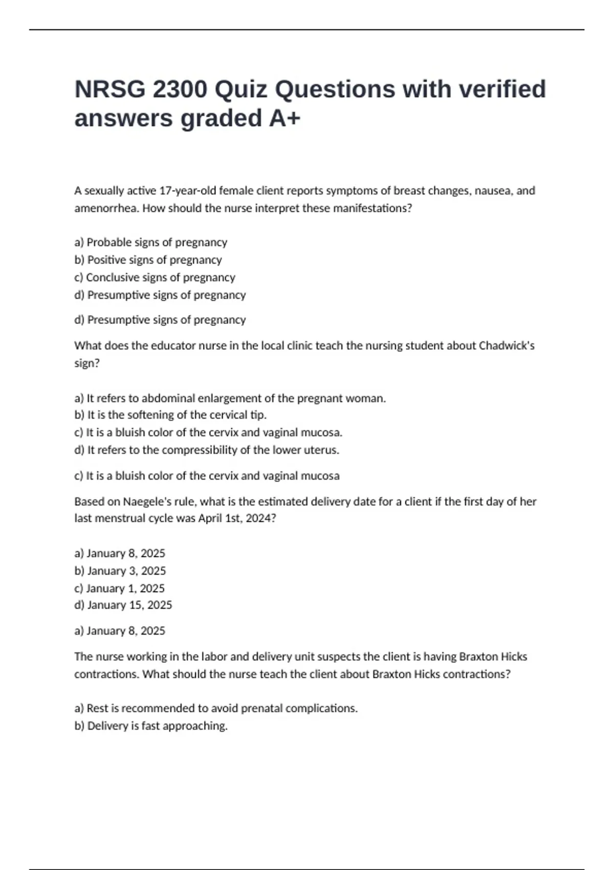 ,c) Braxton Hicks contractions are a sign of maternal infection such as cystitis.