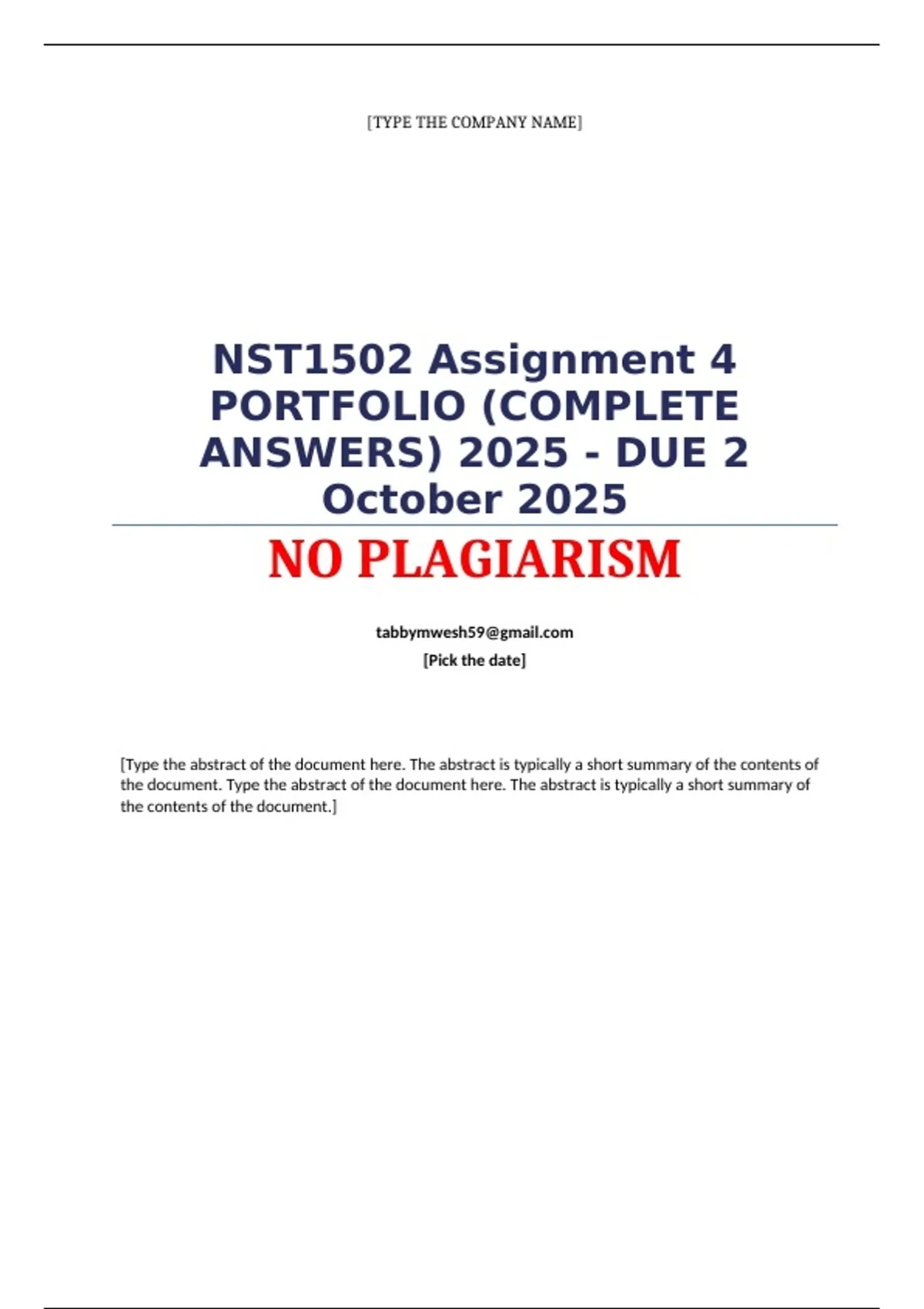 NST1502 Assignment 4 PORTFOLIO (COMPLETE ANSWERS) 2025 - DUE 2
