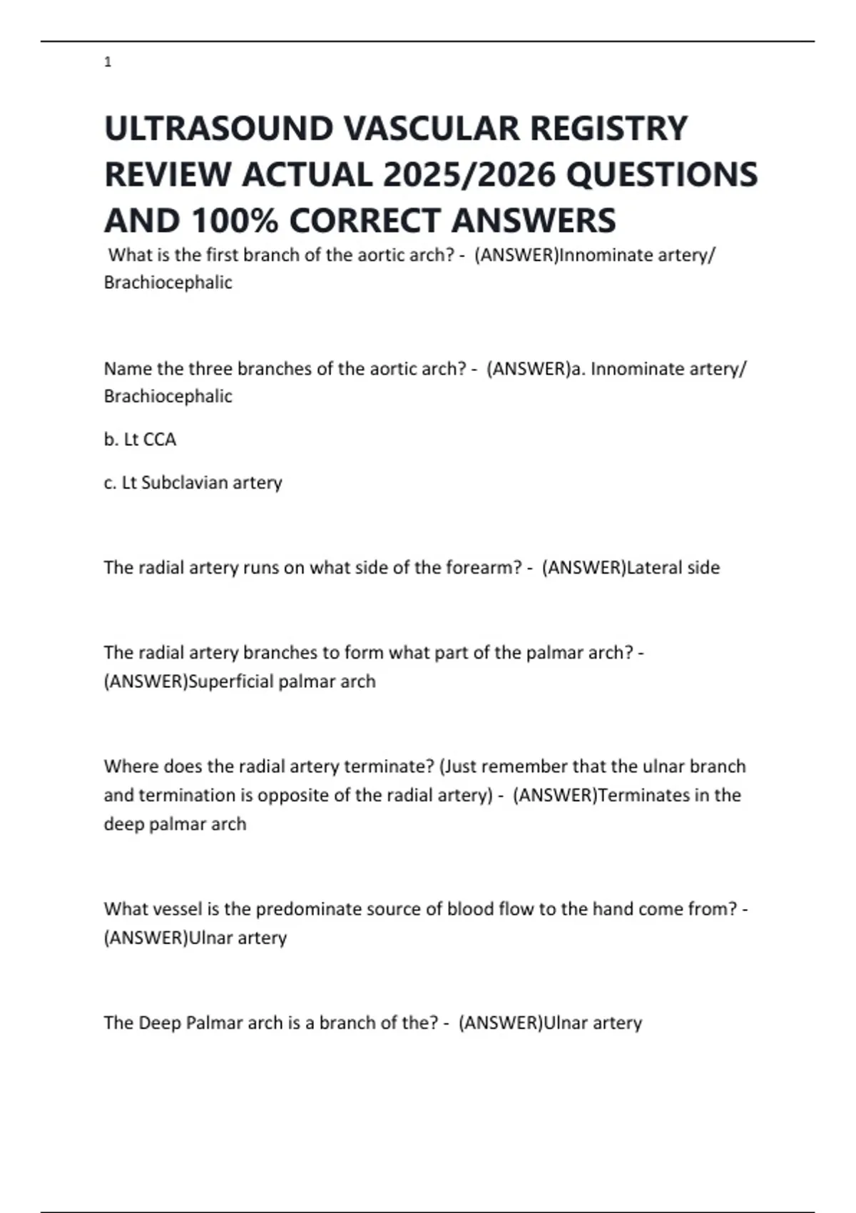 ULTRASOUND VASCULAR REGISTRY REVIEW ACTUAL 2025/2026 QUESTIONS AND 100% CORRECT ANSWERS