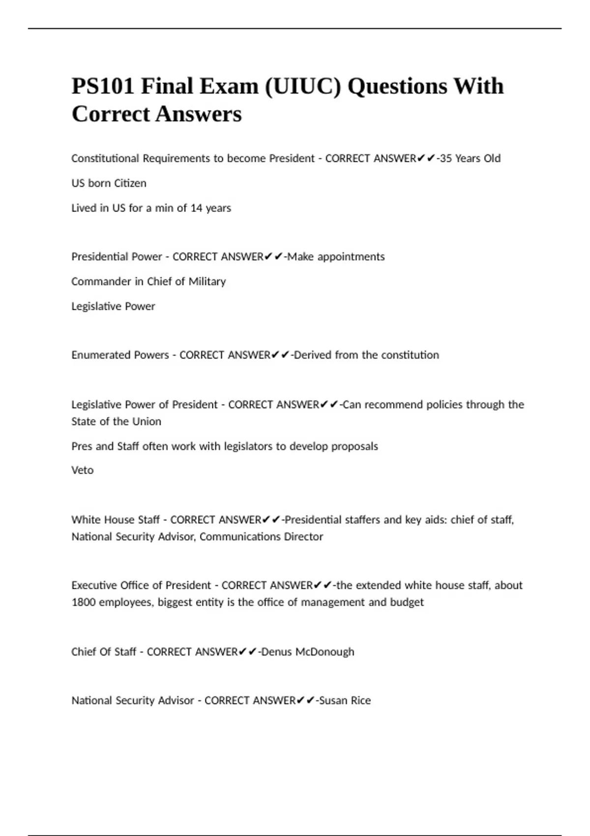 PS101 Final Exam (UIUC) Questions With Correct Answers