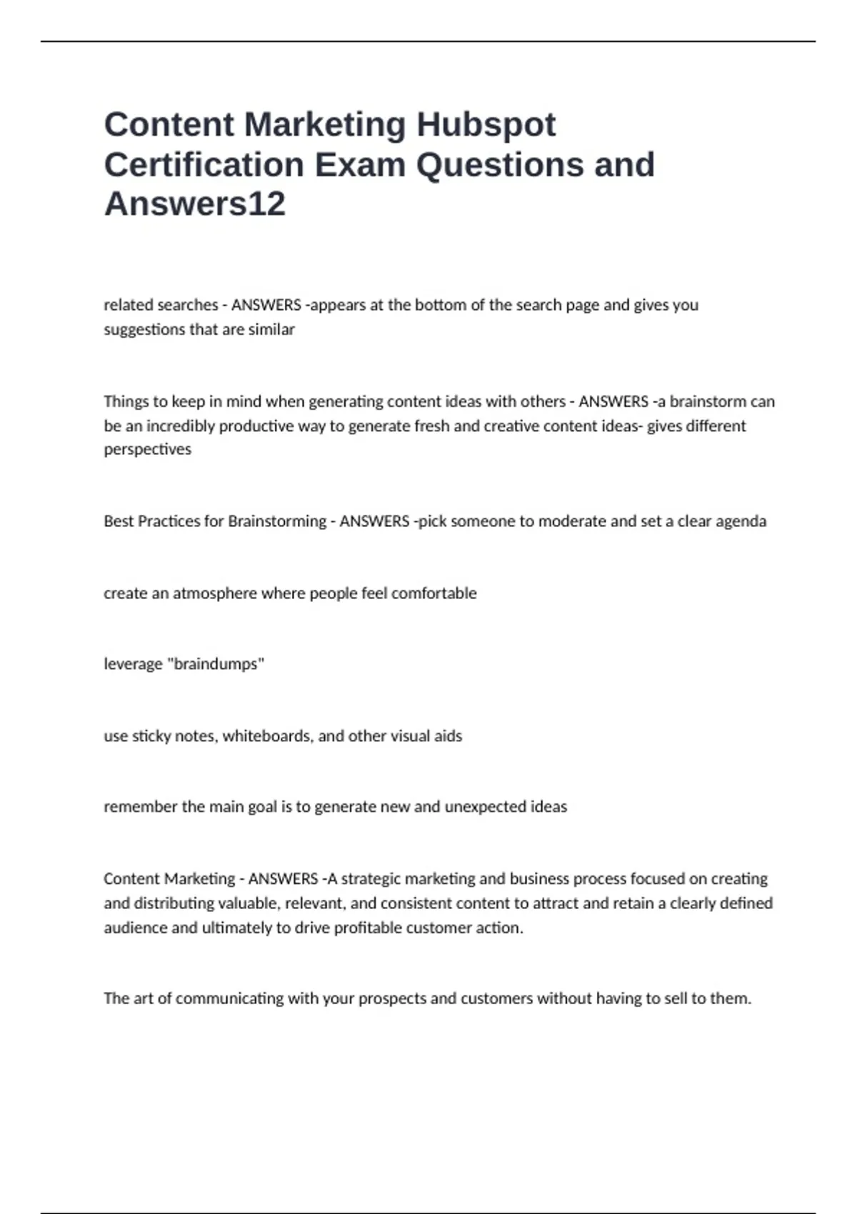 Content Marketing - ANSWERS -A strategic marketing and business process focused on creating
