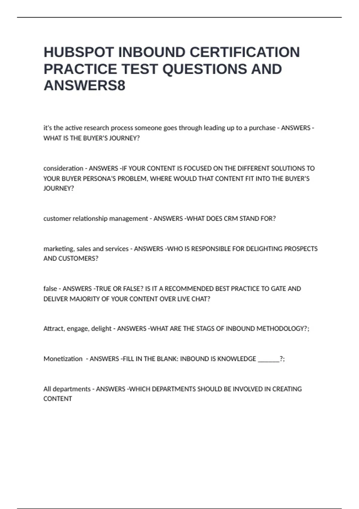 Monetization - ANSWERS -FILL IN THE BLANK: INBOUND IS KNOWLEDGE ______?;