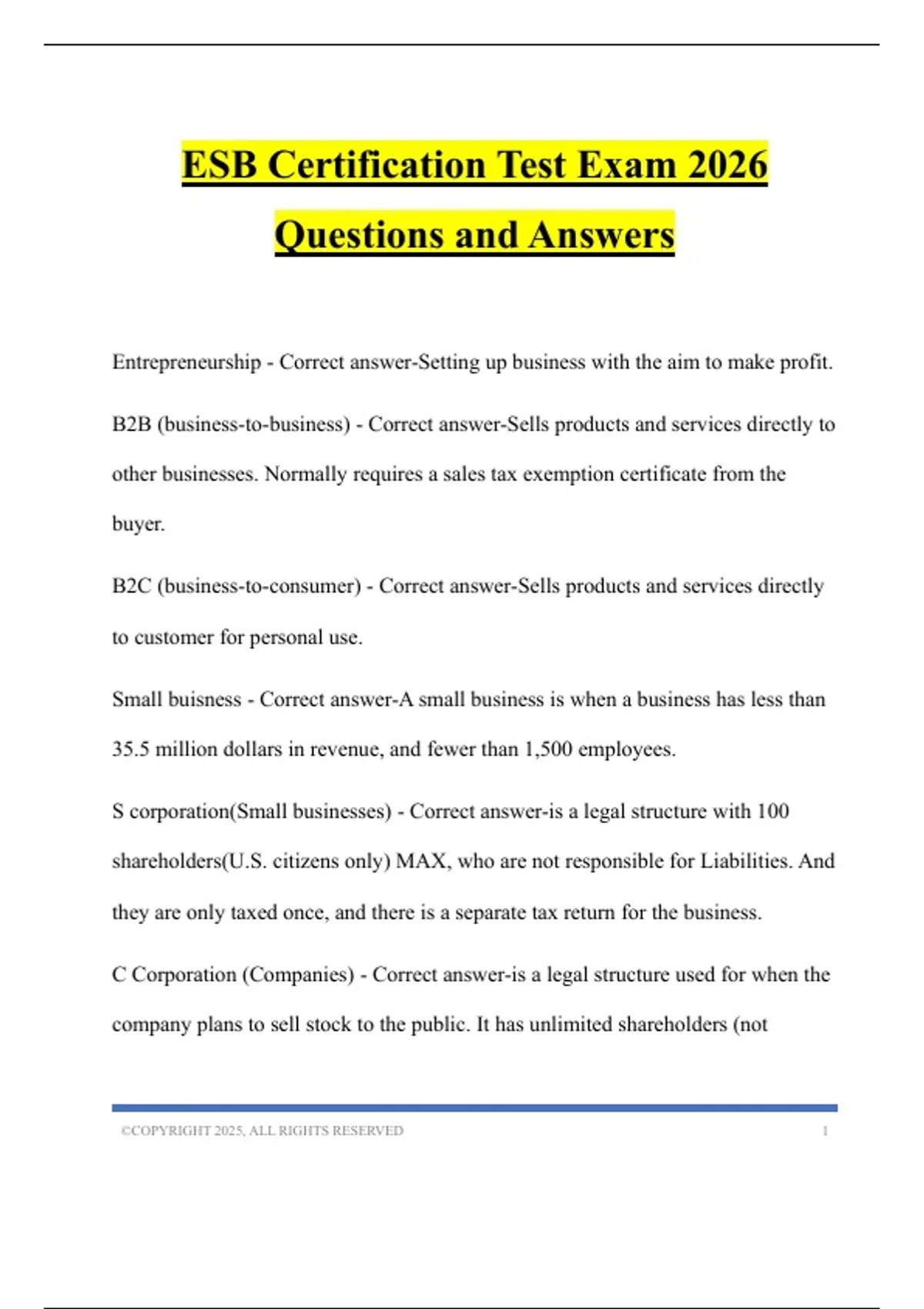 S corporation(Small businesses) - Correct answer-is a legal structure with 100