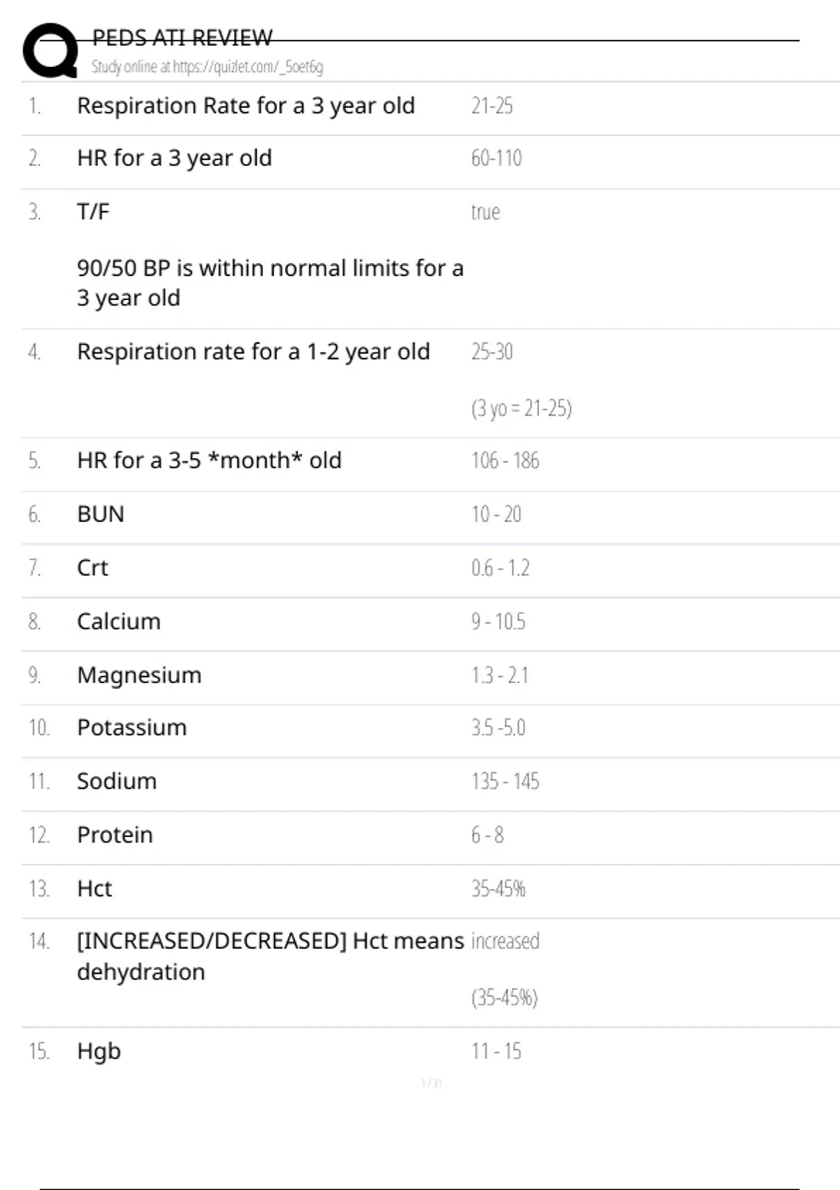 1. Respiration Rate for a 3 year old 21-25