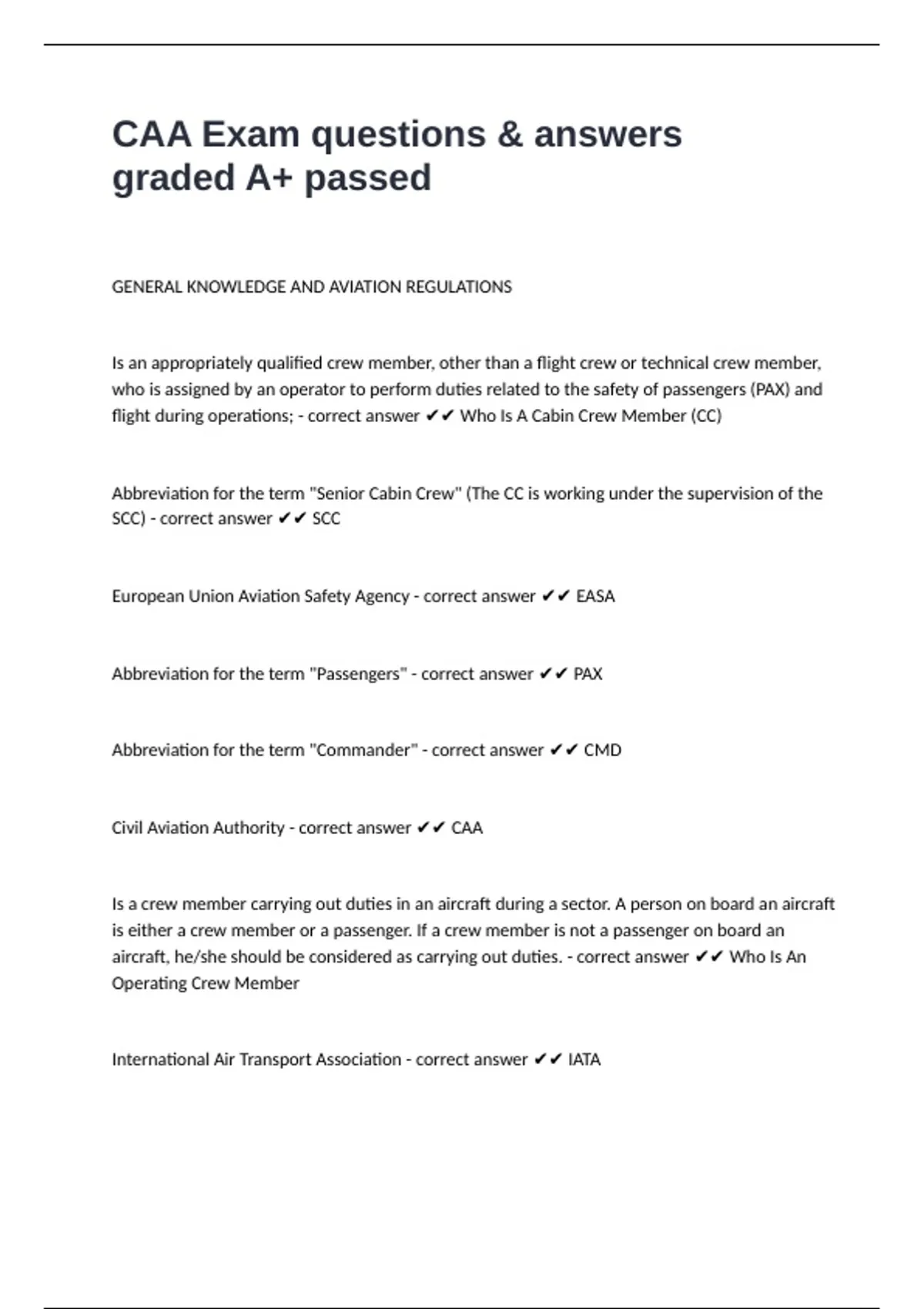 Civil Aviation Authority - correct answer ✔✔ CAA