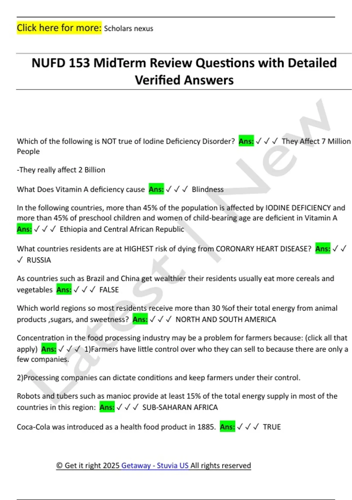 NUFD 153 MidTerm Review Questions with Detailed