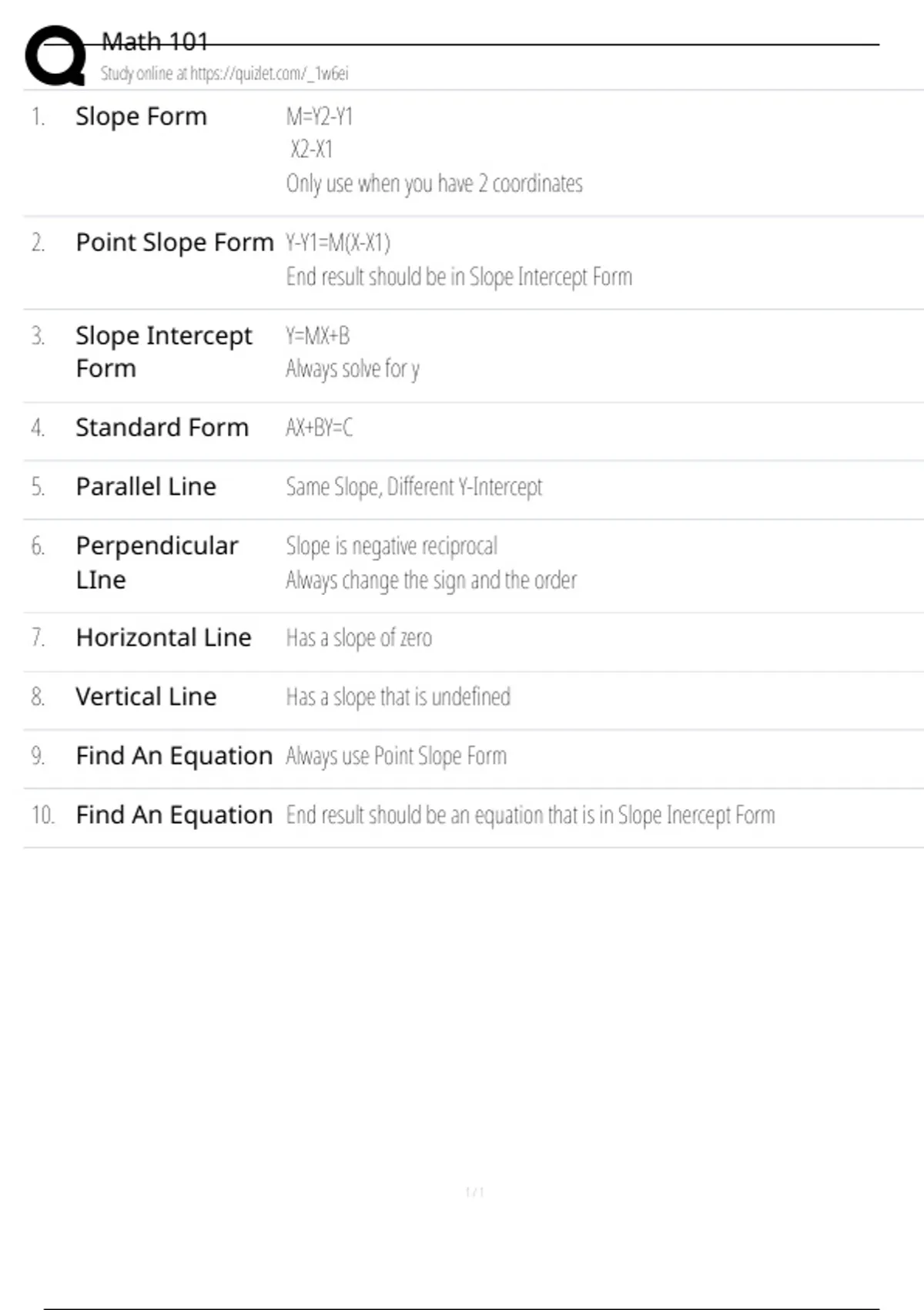 10. Find An Equation End result should be an equation that is in Slope Inercept Form