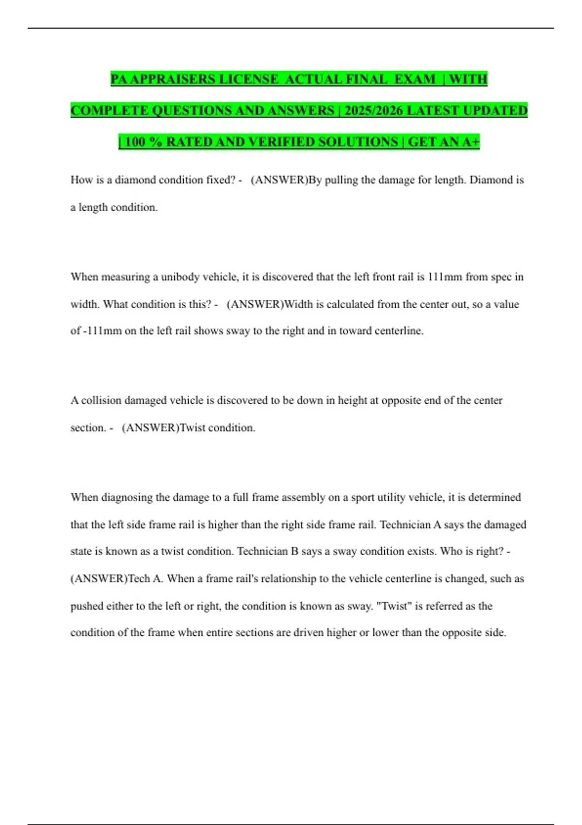 state is known as a twist condition. Technician B says a sway condition exists. Who is right? -