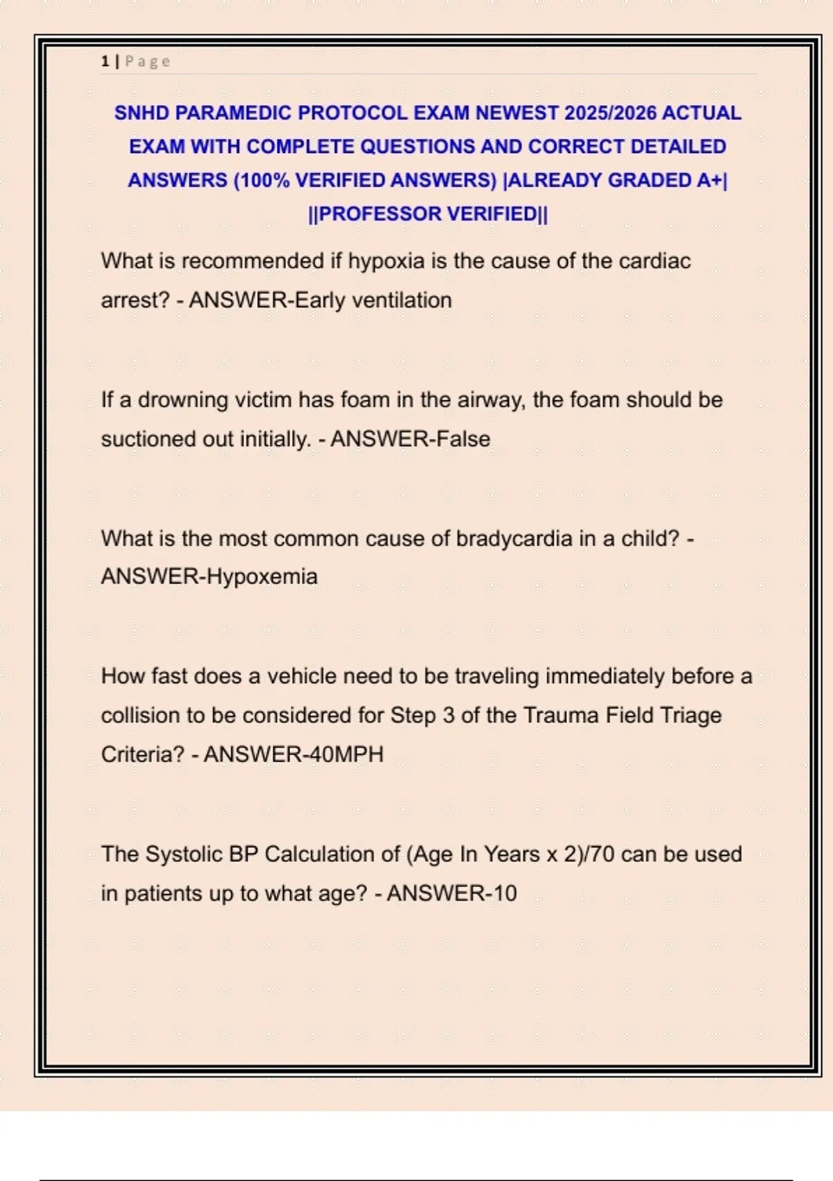 SNHD PARAMEDIC PROTOCOL EXAM NEWEST 2025/2026 ACTUAL