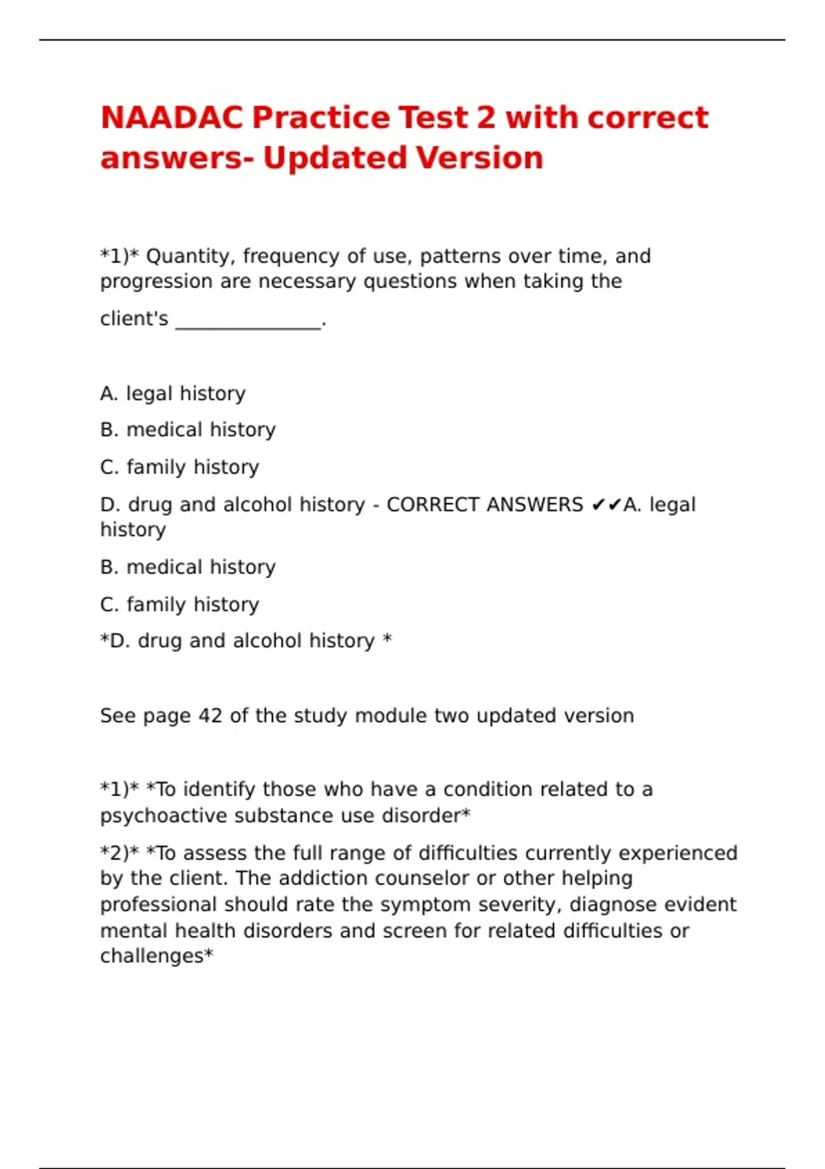 NAADAC Practice Test 2 with correct answers- Updated Version