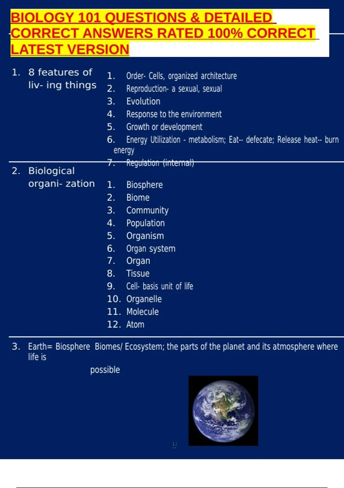 ,BIOLOGY 101 QUESTIONS & DETAILED