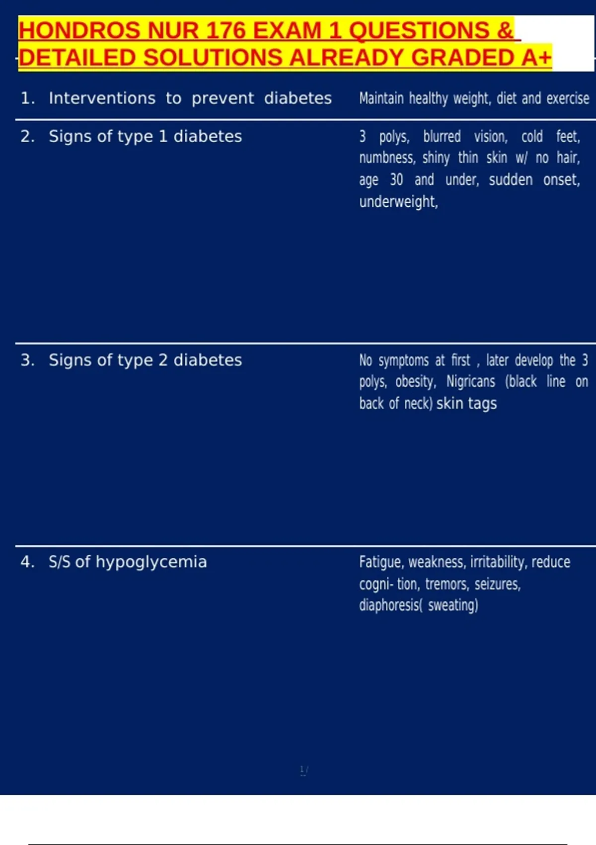 , HONDROS NUR 176 EXAM 1 QUESTIONS &