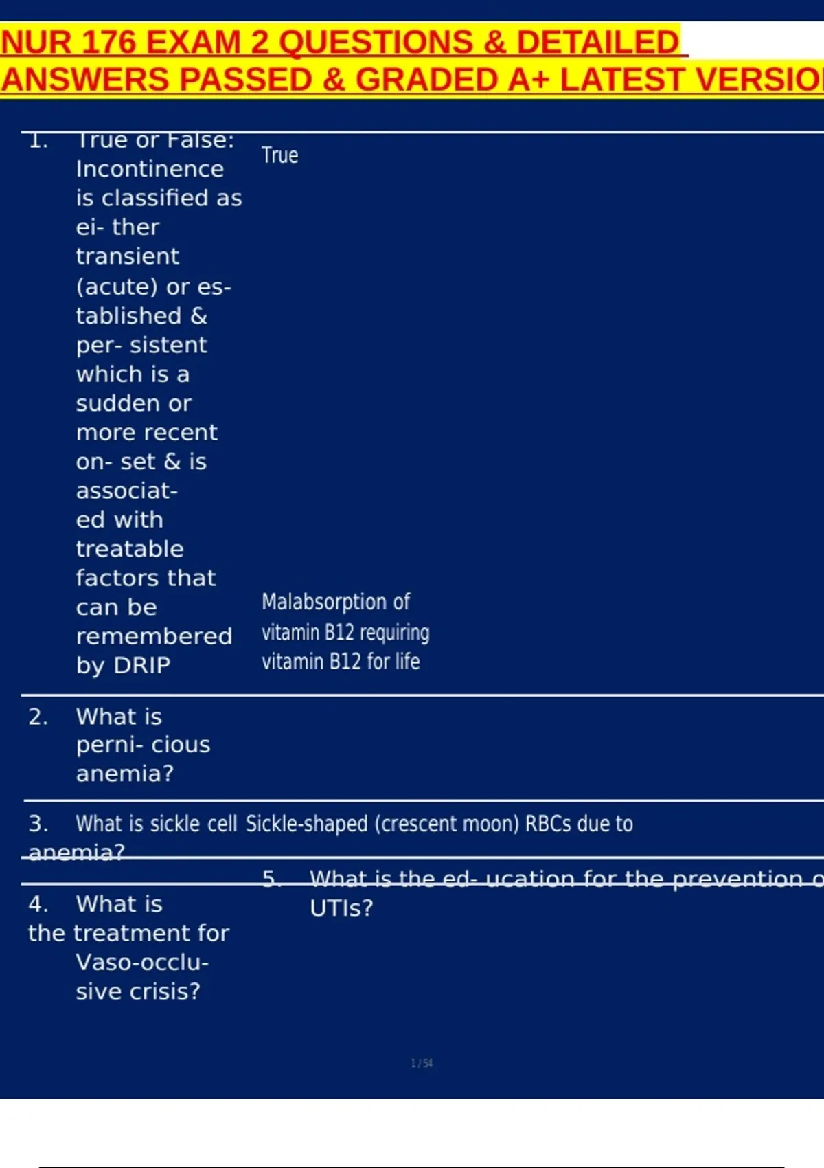 ,NUR 176 EXAM 2 QUESTIONS & DETAILED
