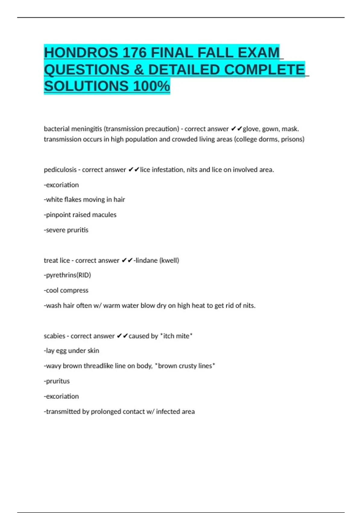HONDROS 176 FINAL FALL EXAM QUESTIONS & DETAILED COMPLETE SOLUTIONS 100% help students reinforce pharmacology knowledge, improve test-taking readiness, and build confidence in clinical decision-making.