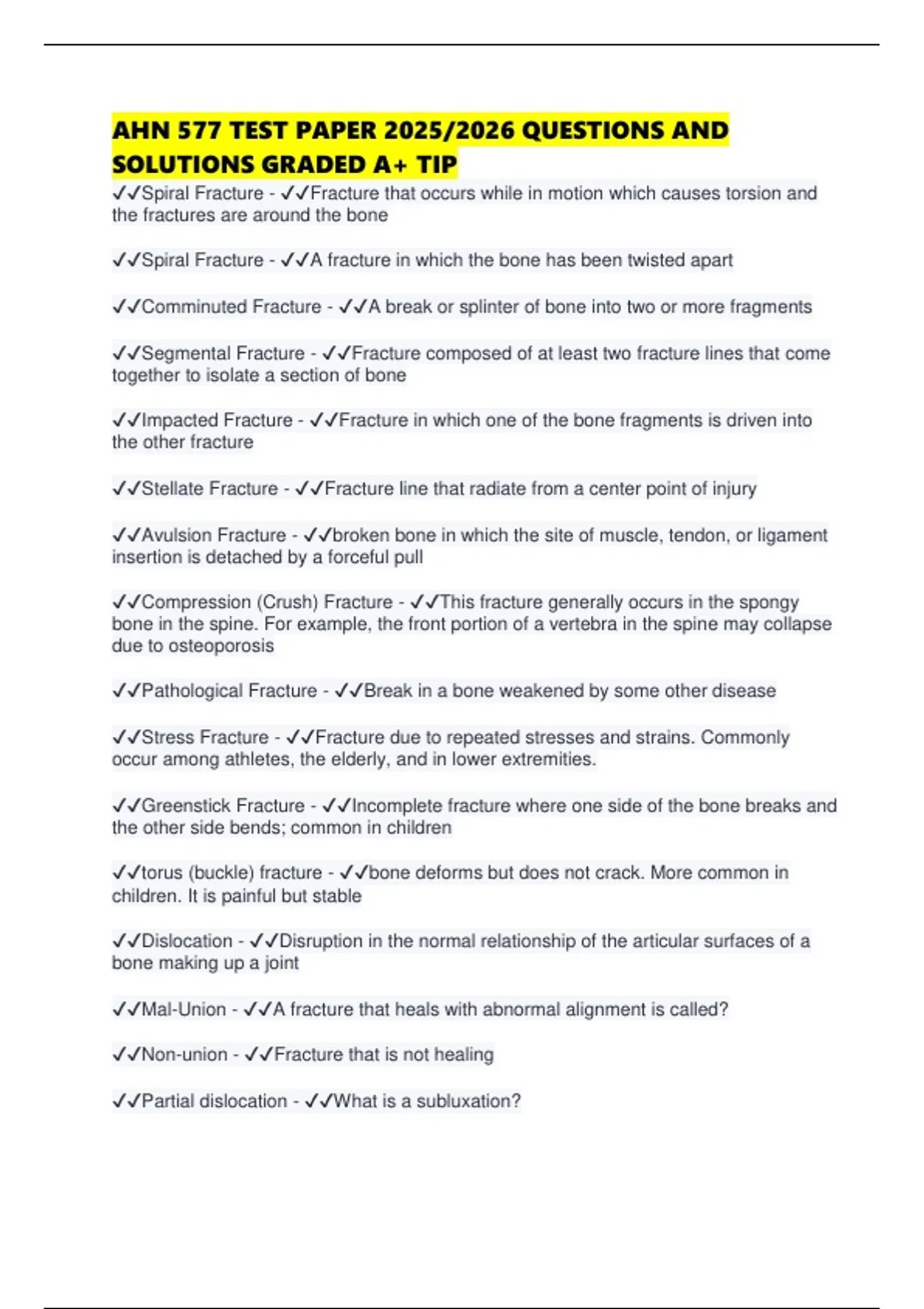 AHN 577 TEST PAPER 2025/2026 QUESTIONS AND