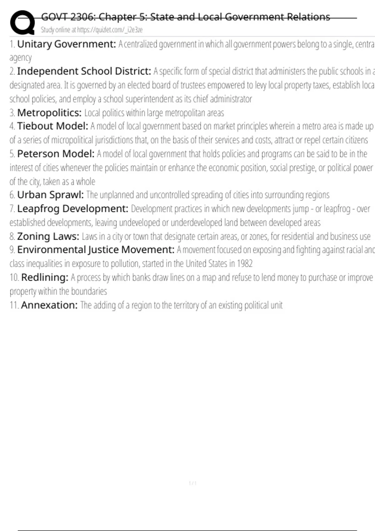 5. Peterson Model: A model of local government that holds policies and programs can be said to be in the