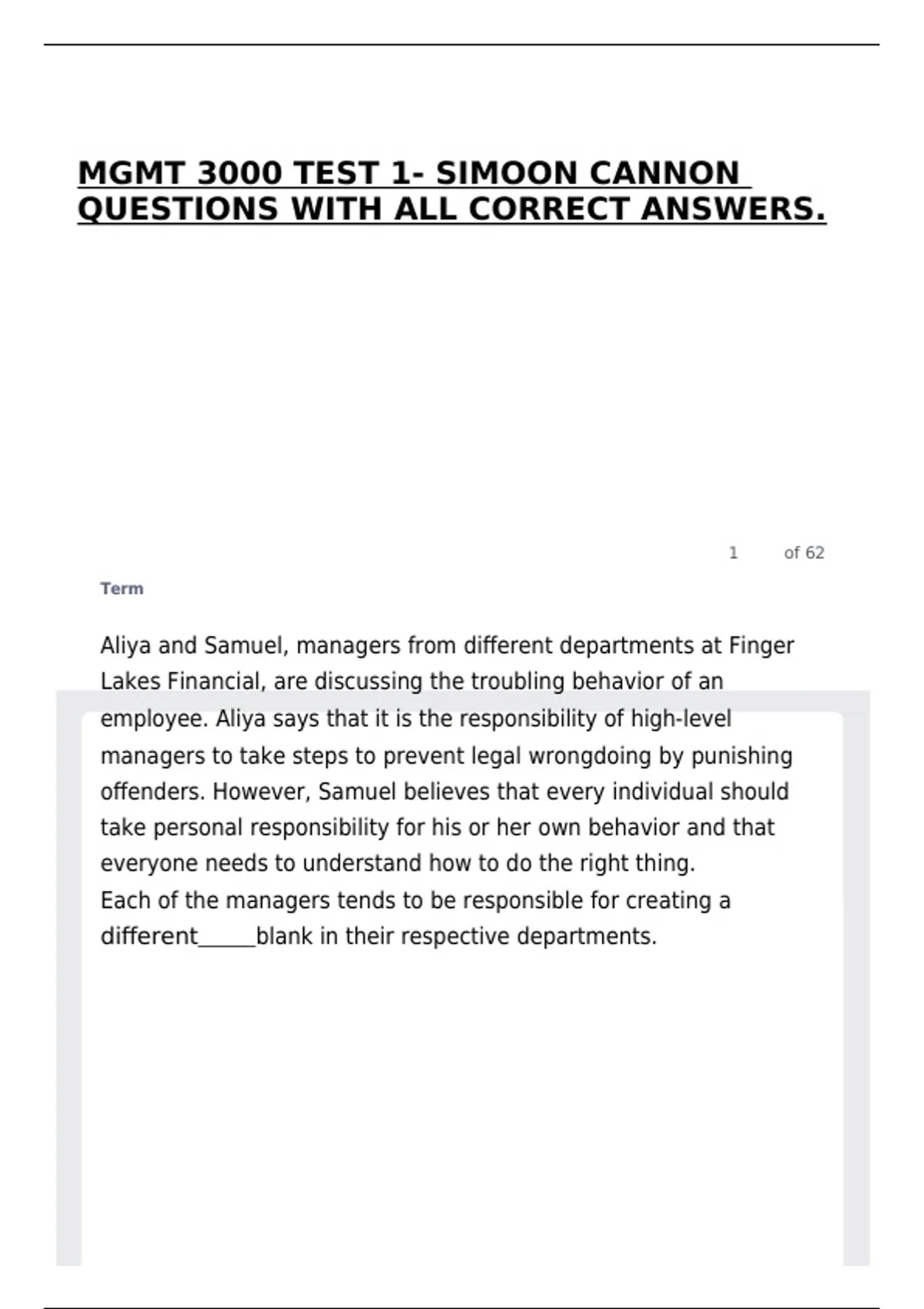 MGMT 3000 TEST 1- SIMOON CANNON QUESTIONS WITH ALL CORRECT ANSWERS.