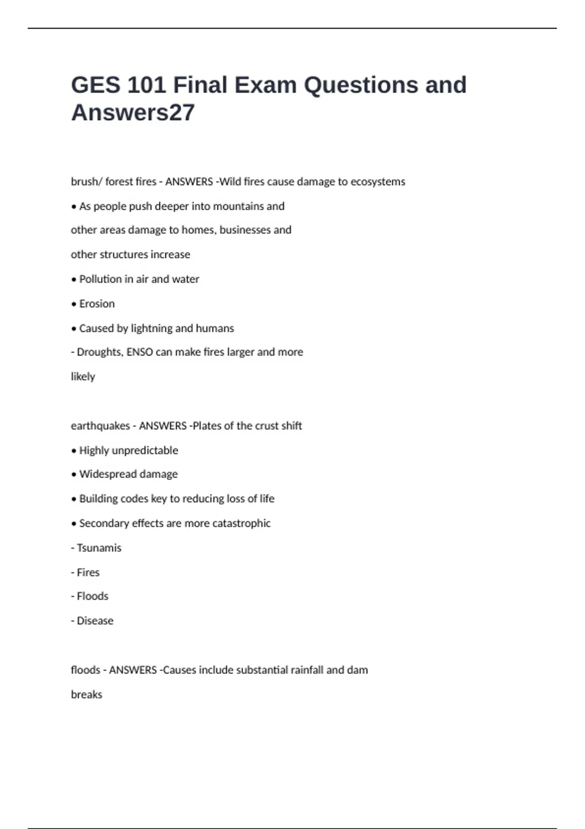brush/ forest fires - ANSWERS -Wild fires cause damage to ecosystems