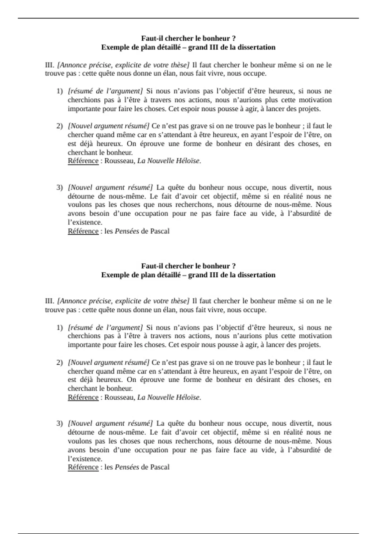 III. [Annonce précise, explicite de votre thèse] Il faut chercher le bonheur même si on ne le